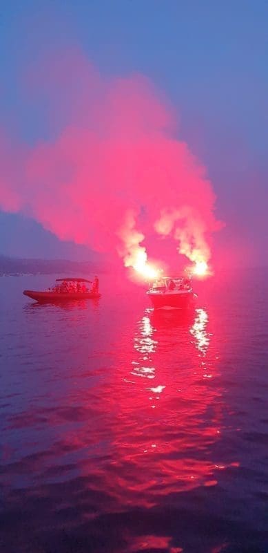 Napravili su špalir brodicama i zapalili baklje. Tada je se gradom zaorio gromoglasni pljesak.