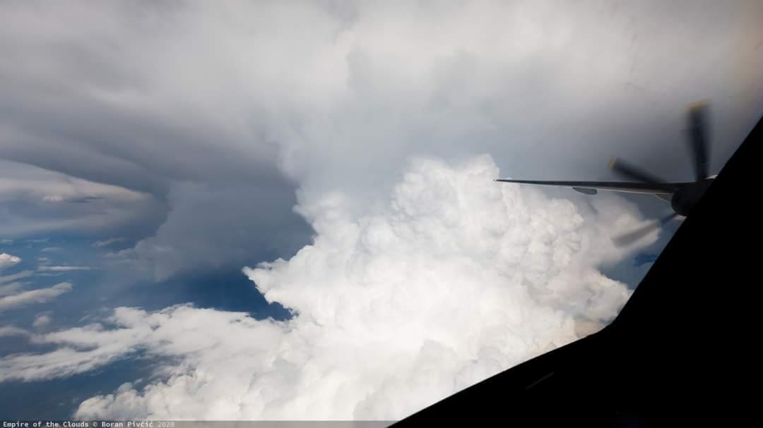 Jučerašnji kumulonimbus nad Zagorom snimljen je iz jednog civilnog zrakoplova s visine, a ovdje može vidjeti kako izgleda biti na rubu olujnog oblaka.