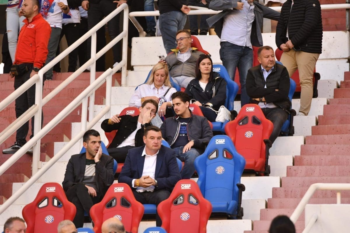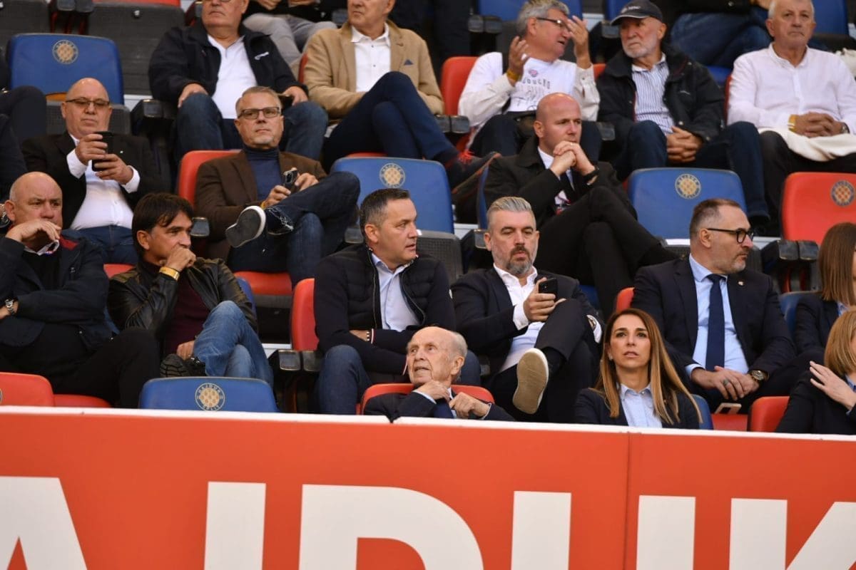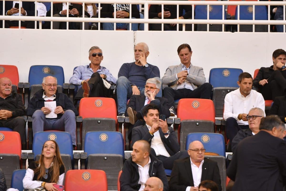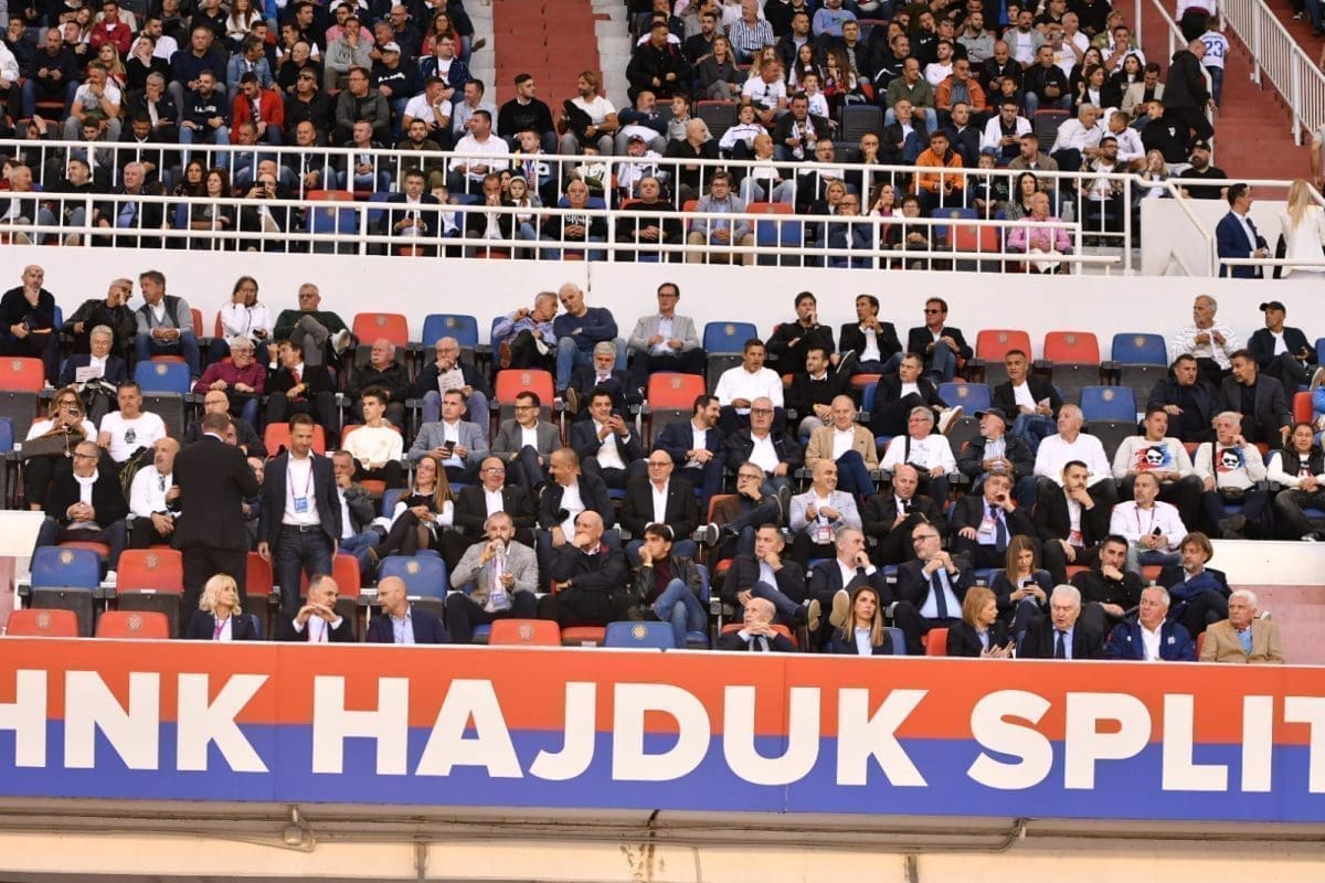 Očekivani, Bijele bodri pun Poljud. U svečanoj loži su izbornik reprezentacije Zlatko Dalić, nekadašnji Vatreni i hajdukovci Stipe Pletikosa i Aljoša Asanović, županijski pročelnik Tomislav Đonlić i mnogi drugi.