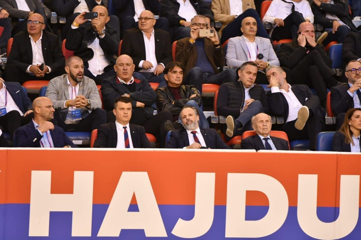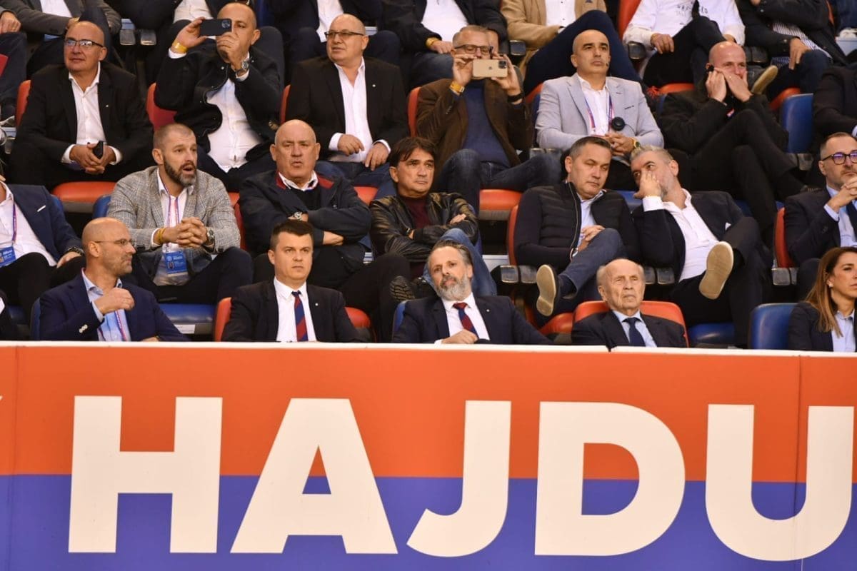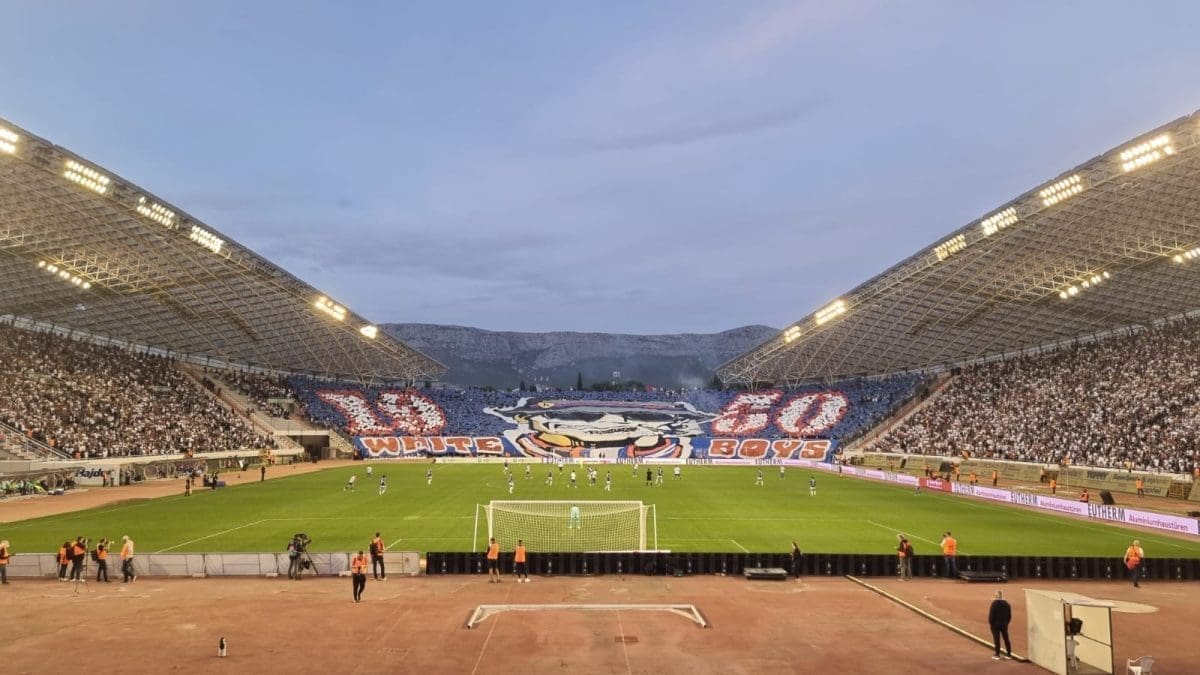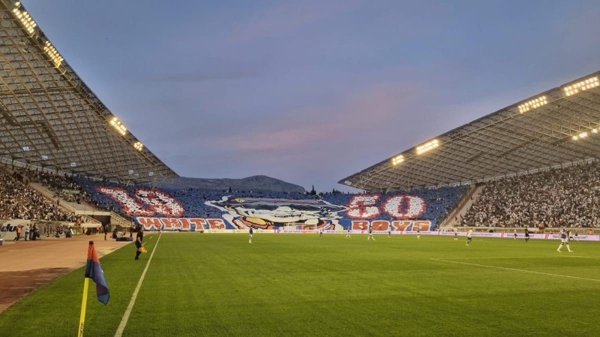 Očekivani, Bijele bodri pun Poljud. U svečanoj loži su izbornik reprezentacije Zlatko Dalić, nekadašnji Vatreni i hajdukovci Stipe Pletikosa i Aljoša Asanović, županijski pročelnik Tomislav Đonlić i mnogi drugi.