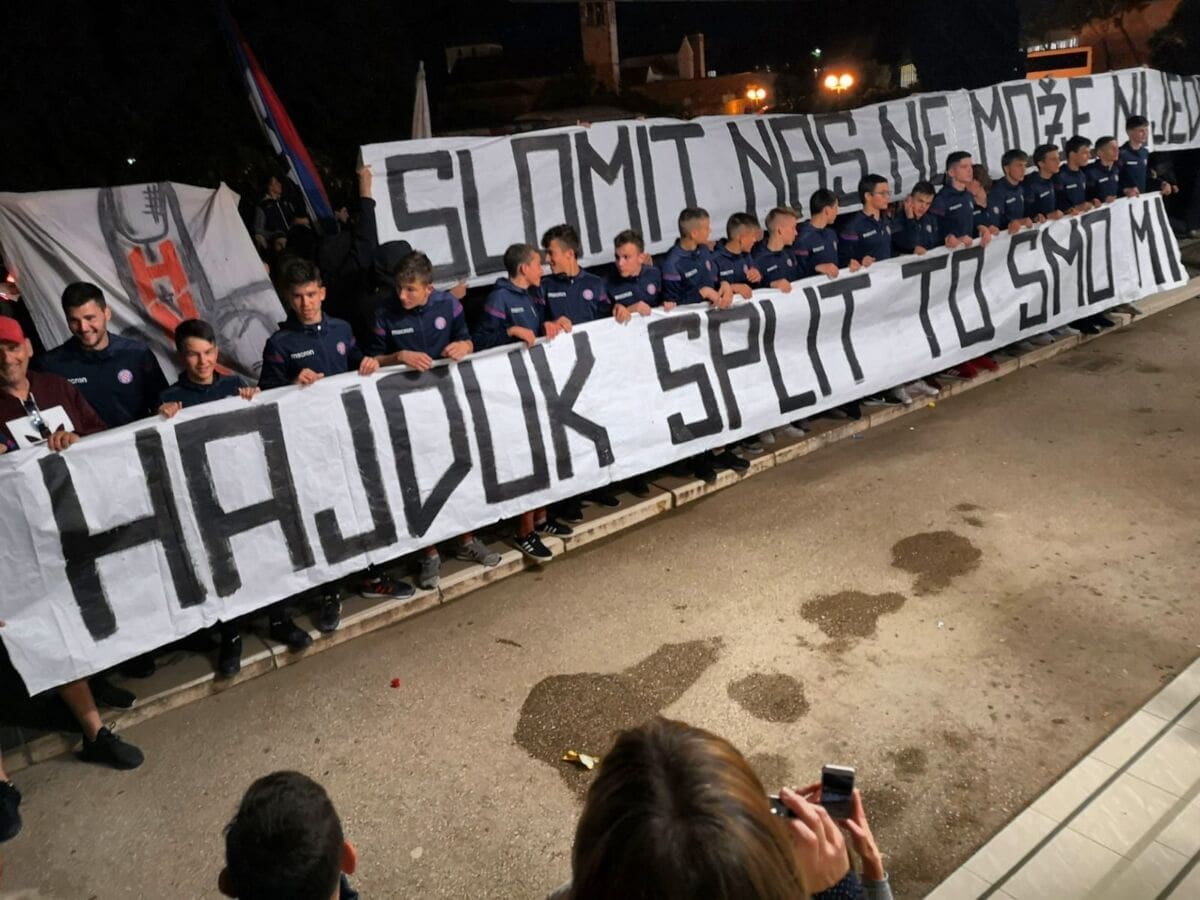 Torcida je u utorak navečer organizirala veličanstveni Hajdukovih pionira koji su se vratili iz Slavonskog Broda.