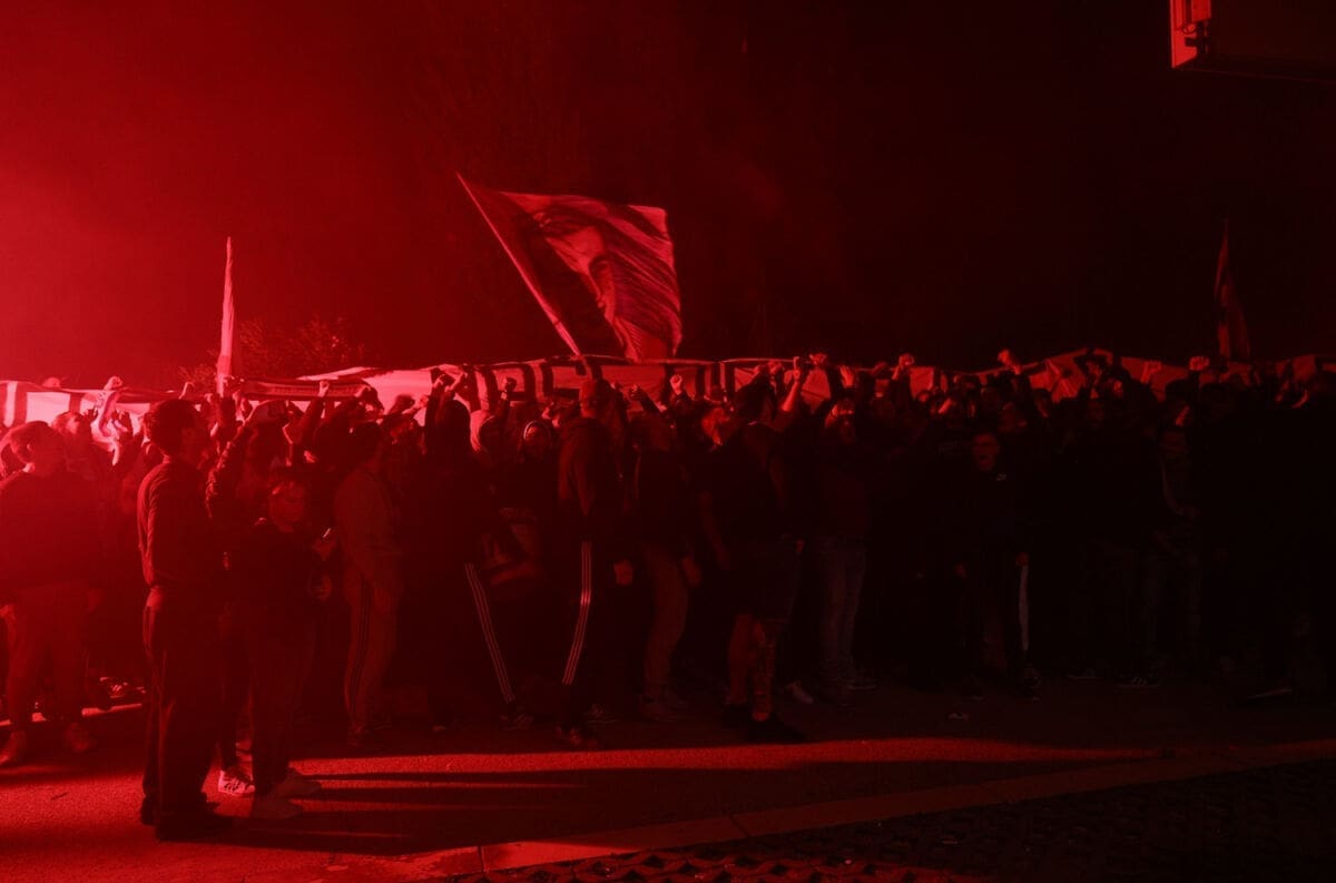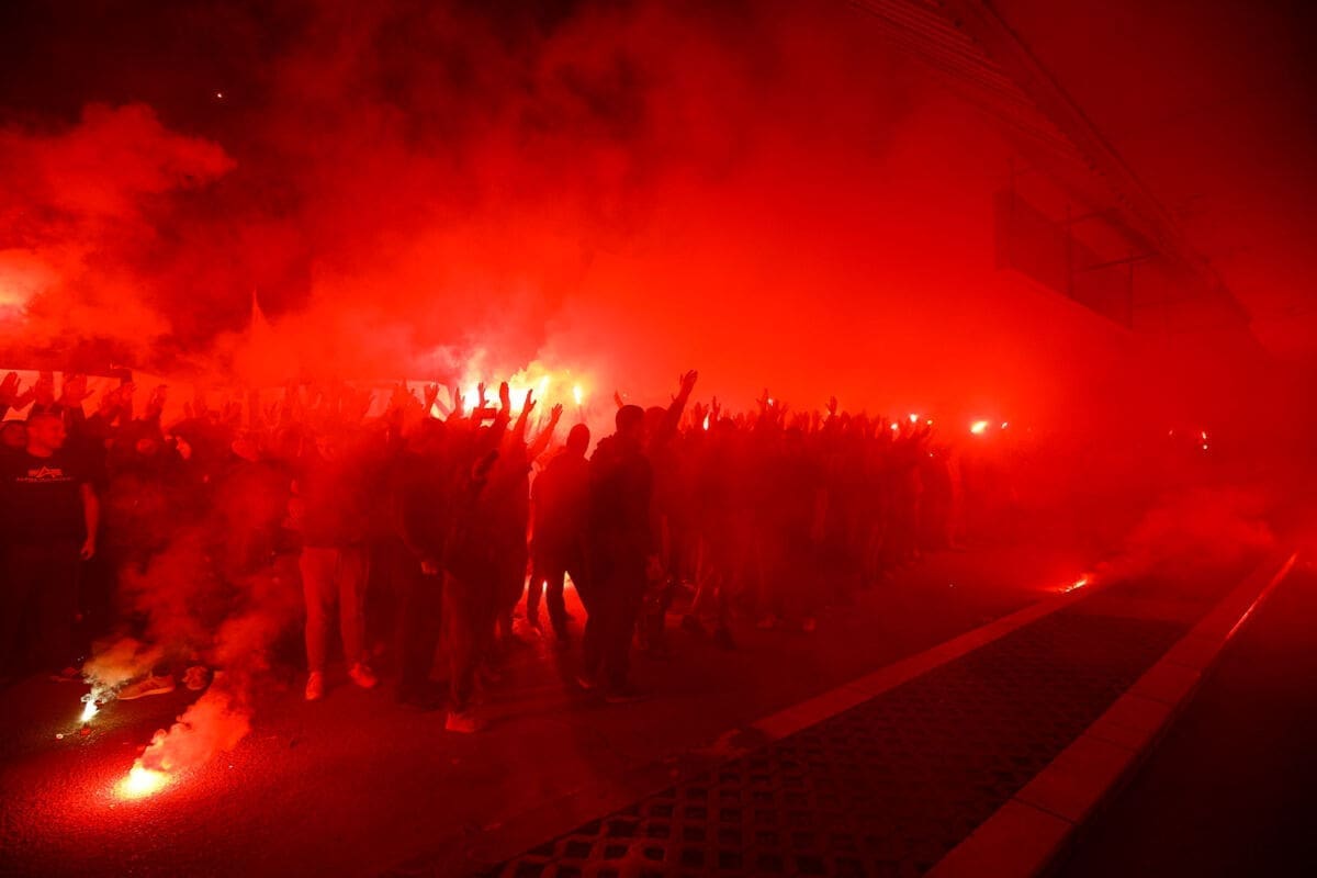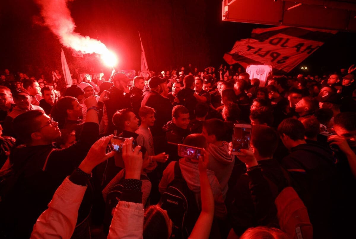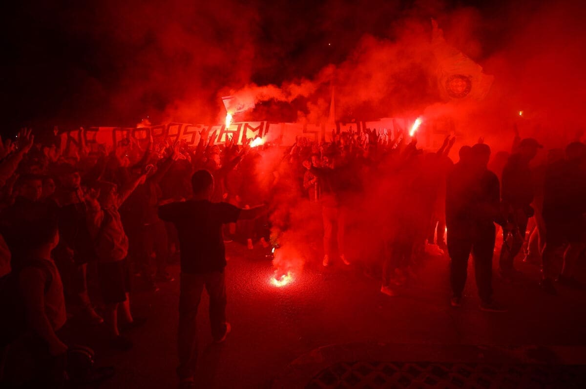 Torcida je priom zapalila bengalke i ispalilla signalne rakete, ne prestajući skandirati i pjevati Hajdučke pjesme.
