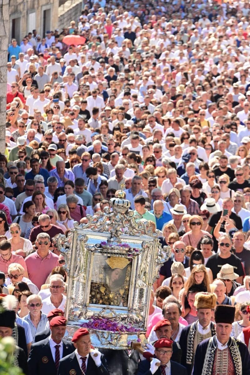 Sinj slavi svoj dan! Blagdan Velike Gospe svečan je i emotivan u ovom gradu, a od ranog jutra tisuće vjernika stiže u centar kako bi se poklonili čudotvornoj Gospi Sinjskoj. U tradicionalnoj procesiji smo susreli brojne uvažene goste, a među njima je bila i Monika Vrgoč, direktorica Turističke zajednice Grada Sinja. Kaže da nikada ovoliko ljudi nije stiglo u Sinj na blagdan Velike Gospe.