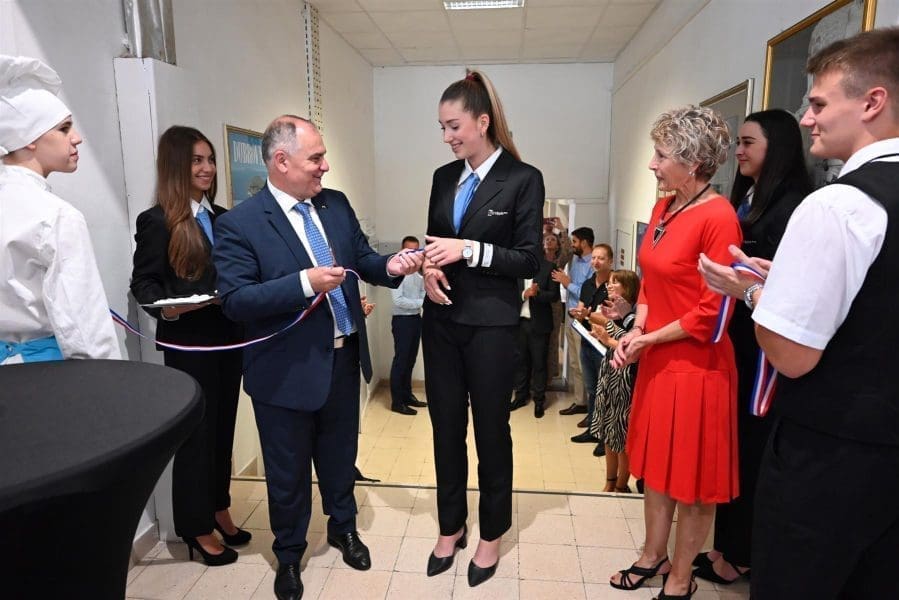 Župan Blaženko Boban je s učenicama i ravnateljicom Srednje strukovne škole „Blaž Jurjev Trogiranin“ otvorio obnovljeni kabinet kuharstva i konobara, čiju je obnovu sufinancirala Splitsko-dalmatinska županija s oko 1,5 milijuna kuna.