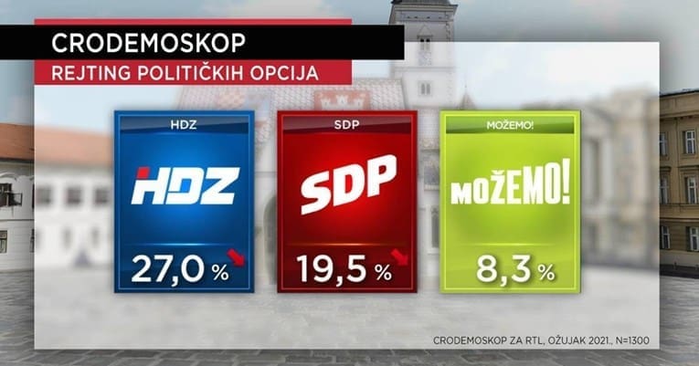 Vladajuća stranka ostaje prvi izbor s 27 posto, ali HDZ već treći mjesec zaredom od početka godine bilježi pad rejtinga.