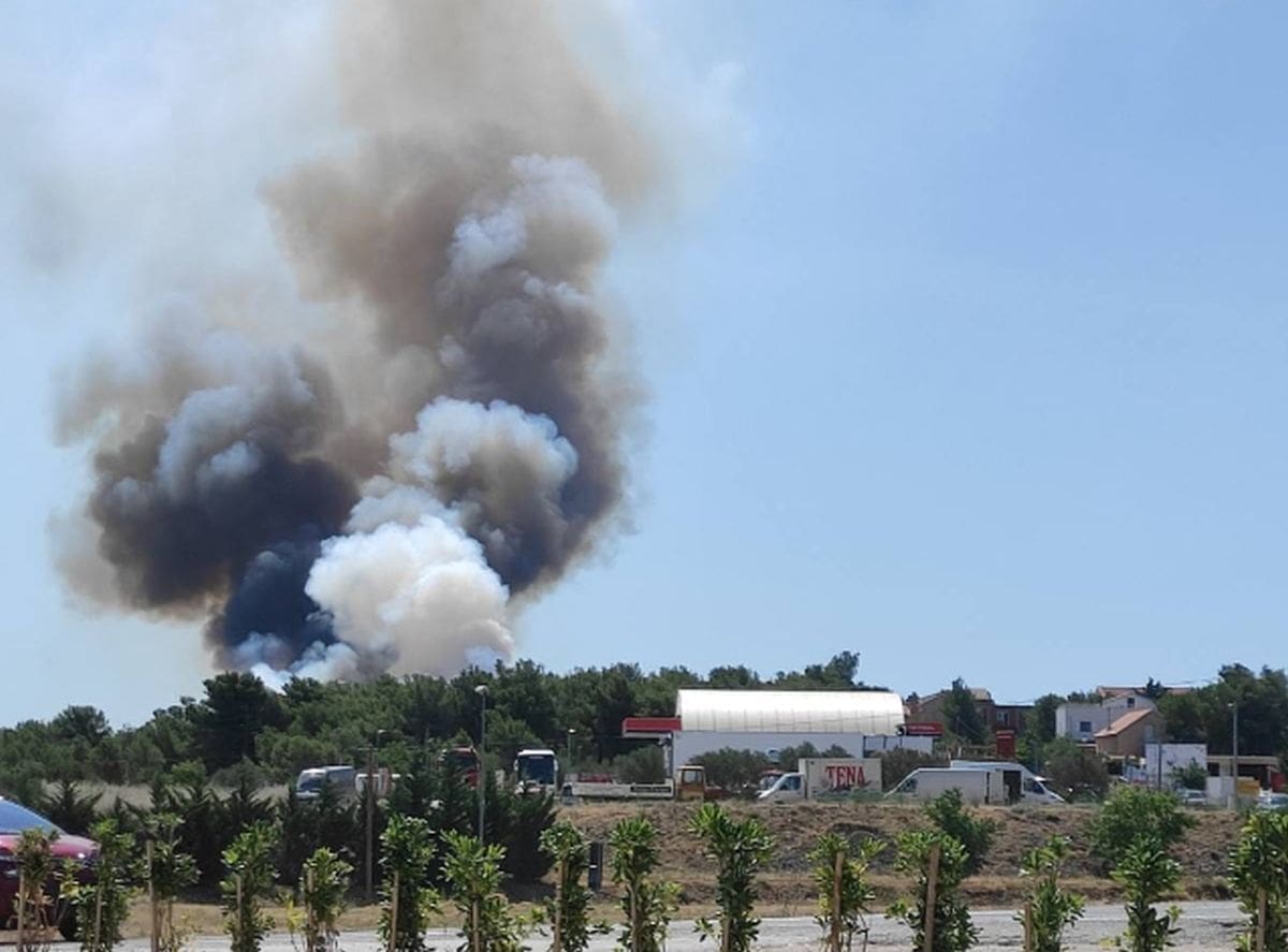 U Pakoštanima, uz Jadransku magistralu, jutros je buknuo veliki požar u borovoj šumi.
