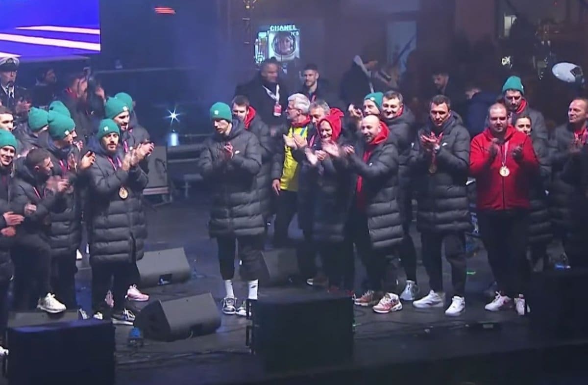 No, uvjerljivo najveći aplauz dobili su Luka Modrić i izbornik Zlatko Dalić. Nakon toga je uslijedila Lijepa naša, te pjesma Ruža Hrvatska, koju su izveli Prljavci.