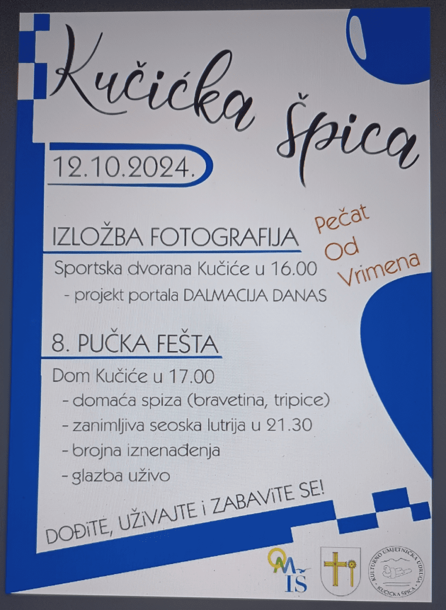 "Još jednom ćemo svima pokazati bogatu gastronomsku ponudu našeg sela. 'Kučićka špica' je poznata svima i mnogi svake godine dođu u naše selo kako bi se dobro zabavili i najeli. Također, Dalmacija Danas će predstaviti svoj poznati projekt 'Pečat od vrimena'. Svake godine bude zanimljivo na seoskoj lutriji, a sve ovo je u organizaciji Kulturno umjetničke udruge 'Kučićka špica'", rekao je Dalmaciji Danas predsjednik udruge Joško Vukasović.