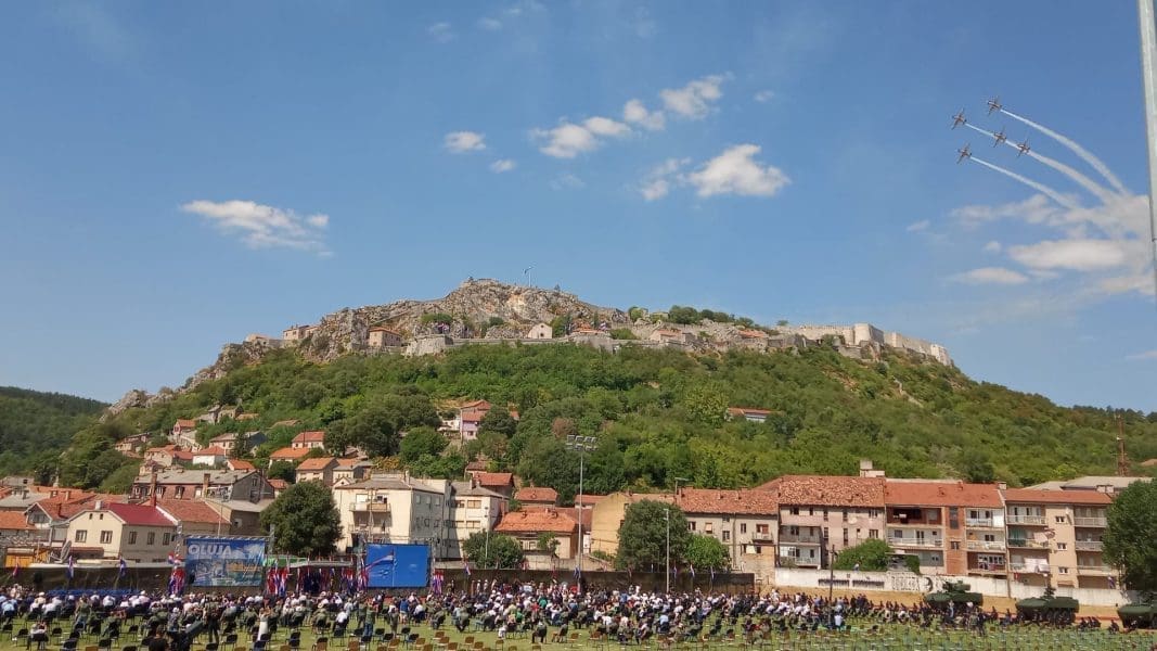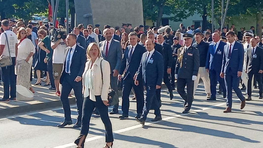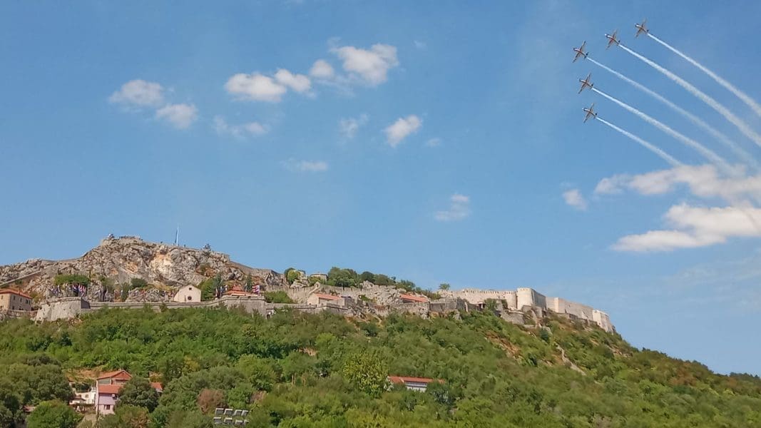 Jutros je proslava počela prijavkom predsjedniku Republike i vrhovnom zapovjedniku, a za to vrijeme je na tvrđavi podignuta državna zastava uz pjevanje himne. Obilježavanje se nastavilo zvonjavom crkvenih zvona, najavom plotuna, čitanjem povjesnice i imena svih poginulih branitelja u Oluji, kao i minutom šutnje.