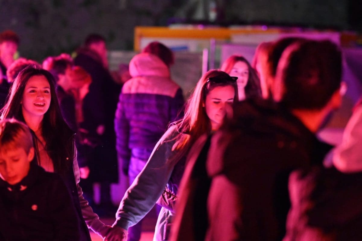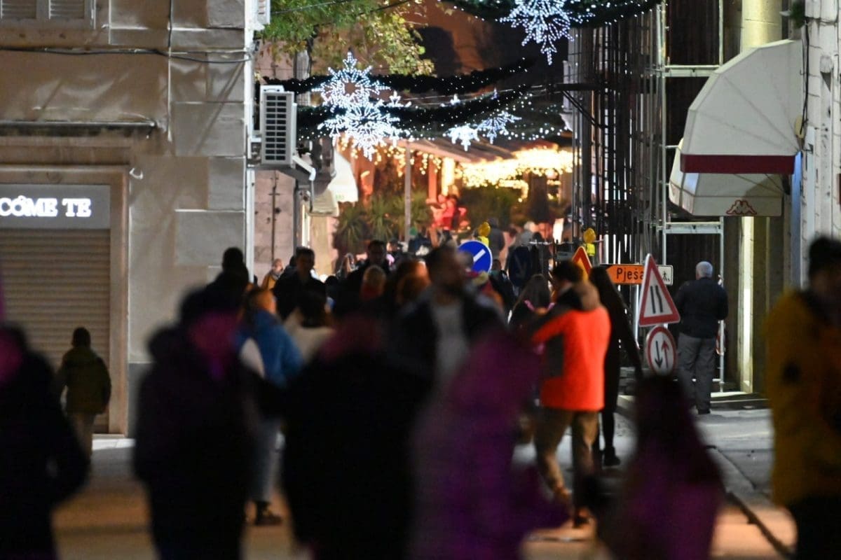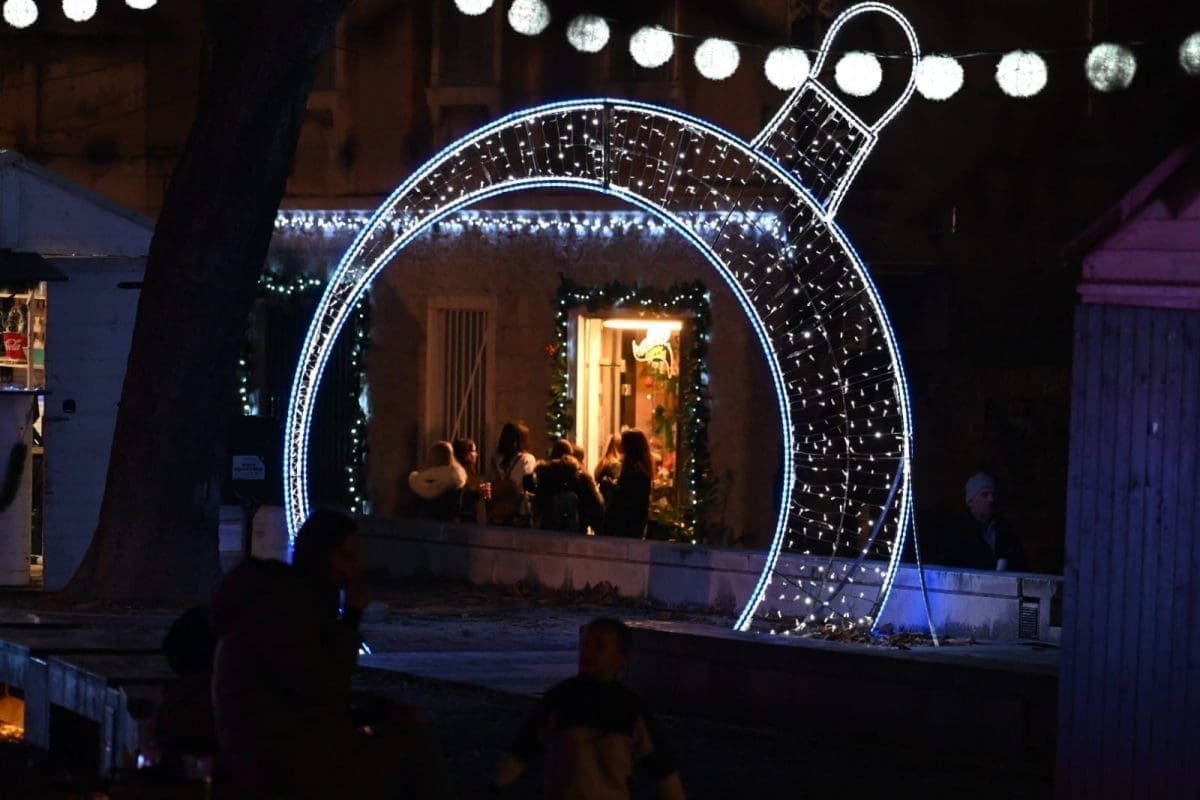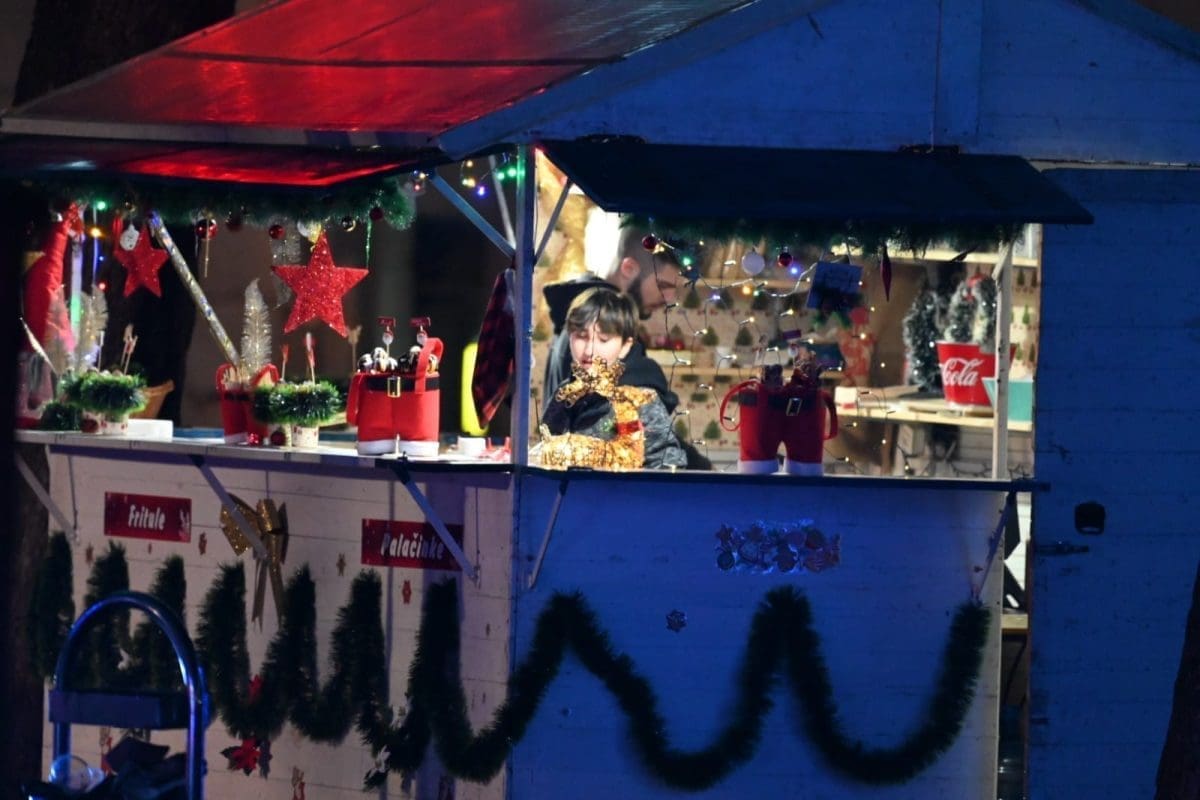 Veselja i dobrog raspoloženja ne fali po splitskim ulicama i trgovima okićenim prigodnim ukrasima i prepunim ljudi. Bez obzira na hladnoću, Splićani su u utorak navečer pohrlili na popularne kućice.