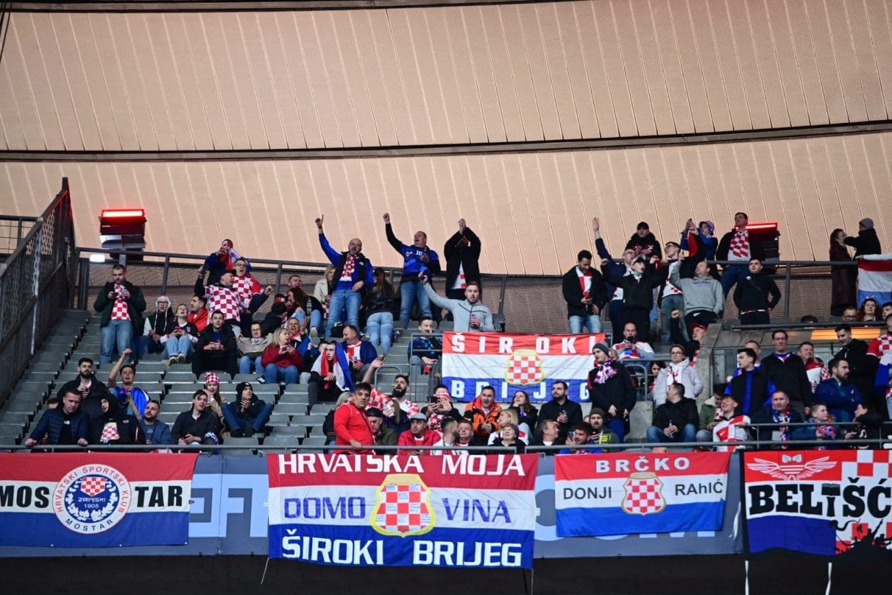 Oko 4.000 hrvatskih navijača nalazi se na stadionu i bodri naše reprezentativce. Kako izgleda njihova tribina i kakvo je raspoloženje, pogledajte u nastavku.