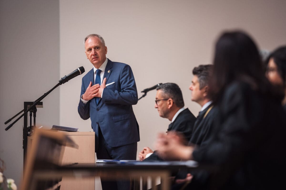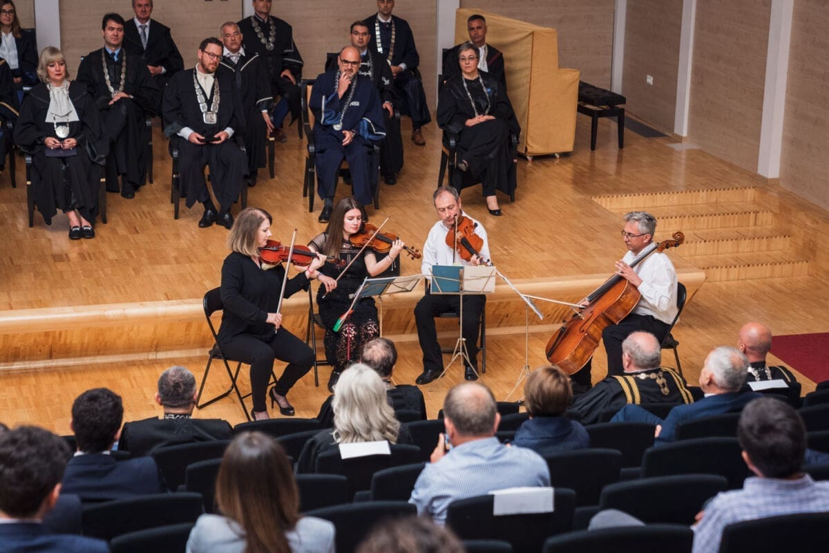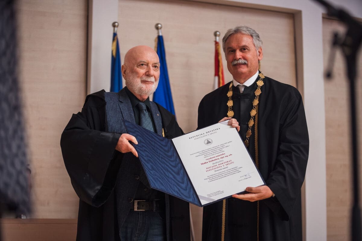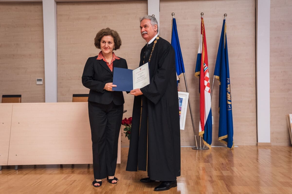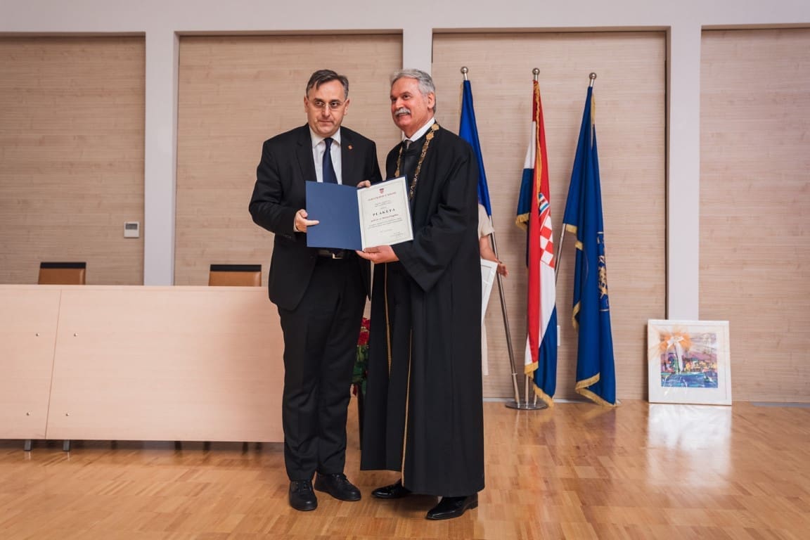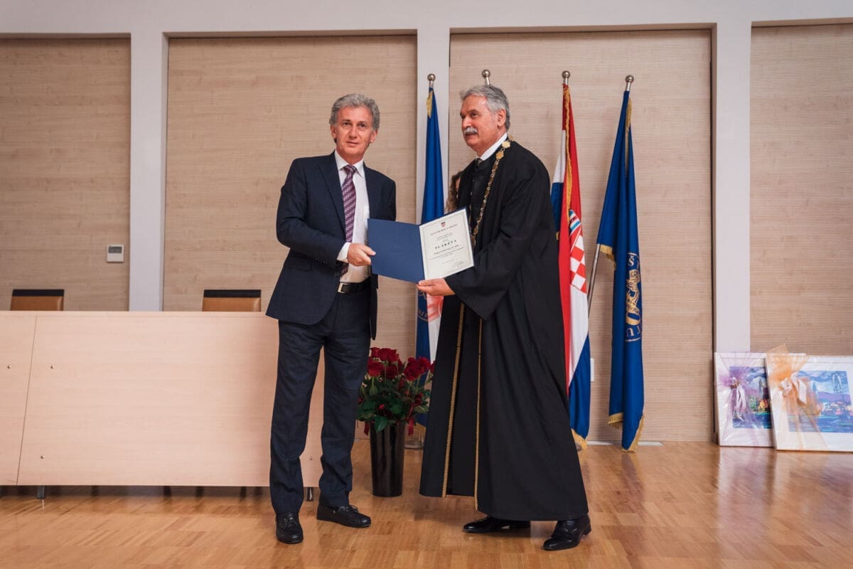Titula počasnog zvanja professor emeritus dodijeljena je prof. dr. sc. Zoranu Babiću (EF), prof. dr. sc. Nikoli Bižaci (KBF), prof. dr. sc. Izetu Hozi (MF), prof. dr. sc. Anti Mihanoviću (FGAG), prof. dr. sc. Ivici Veži (FESB).