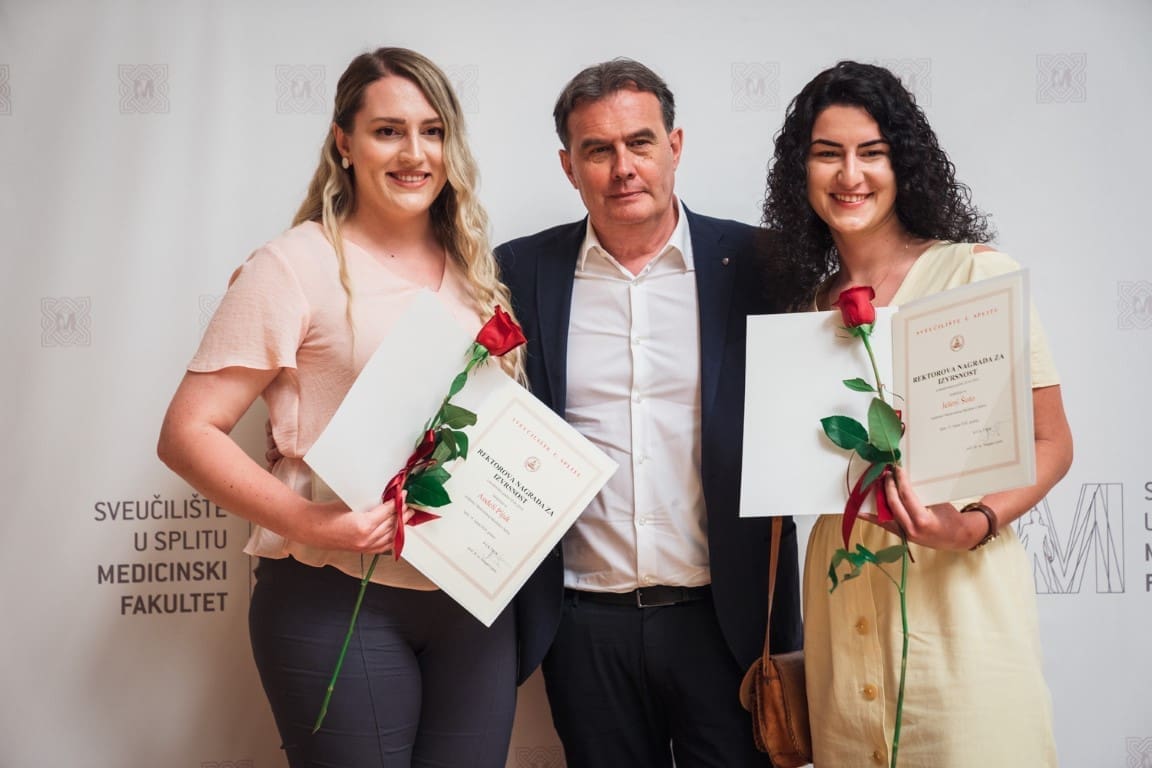 - Marijani Vučković i Hrvoju Raosu, studentima Medicinskog fakulteta u Splitu, koji su svojim zajedničkim istraživačkim i znanstvenim aktivnostima te profesionalnim odnosom prema medicinskoj znanosti doprinijeli promociji Medicinskog fakulteta u Splitu, a javnim prezentacijama svojih stručnih radova na više državnih i međunarodnih konferencija i kongresa afirmativno predstavljaju i promoviraju Sveučilište u Splitu doprinoseći njegovom ugledu i boljem pozicioniranju.