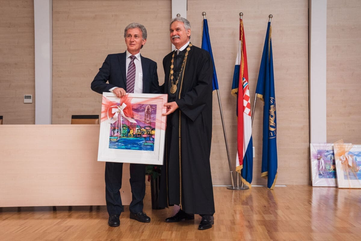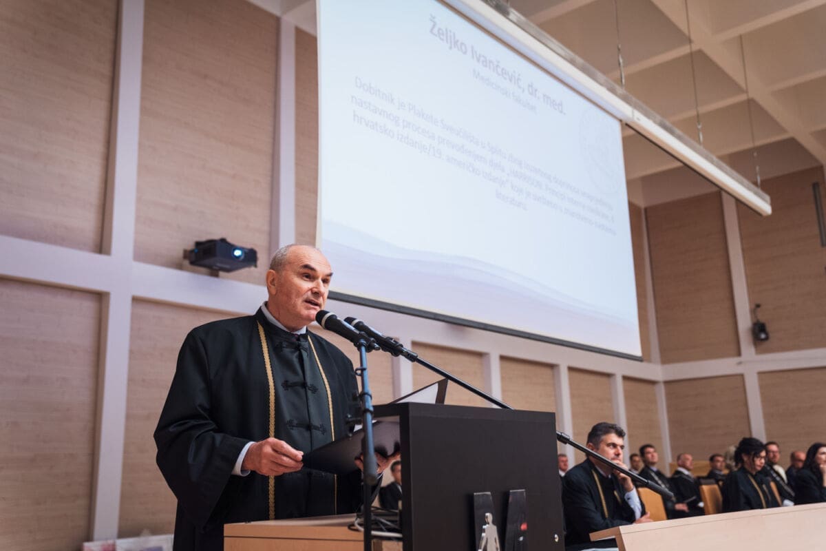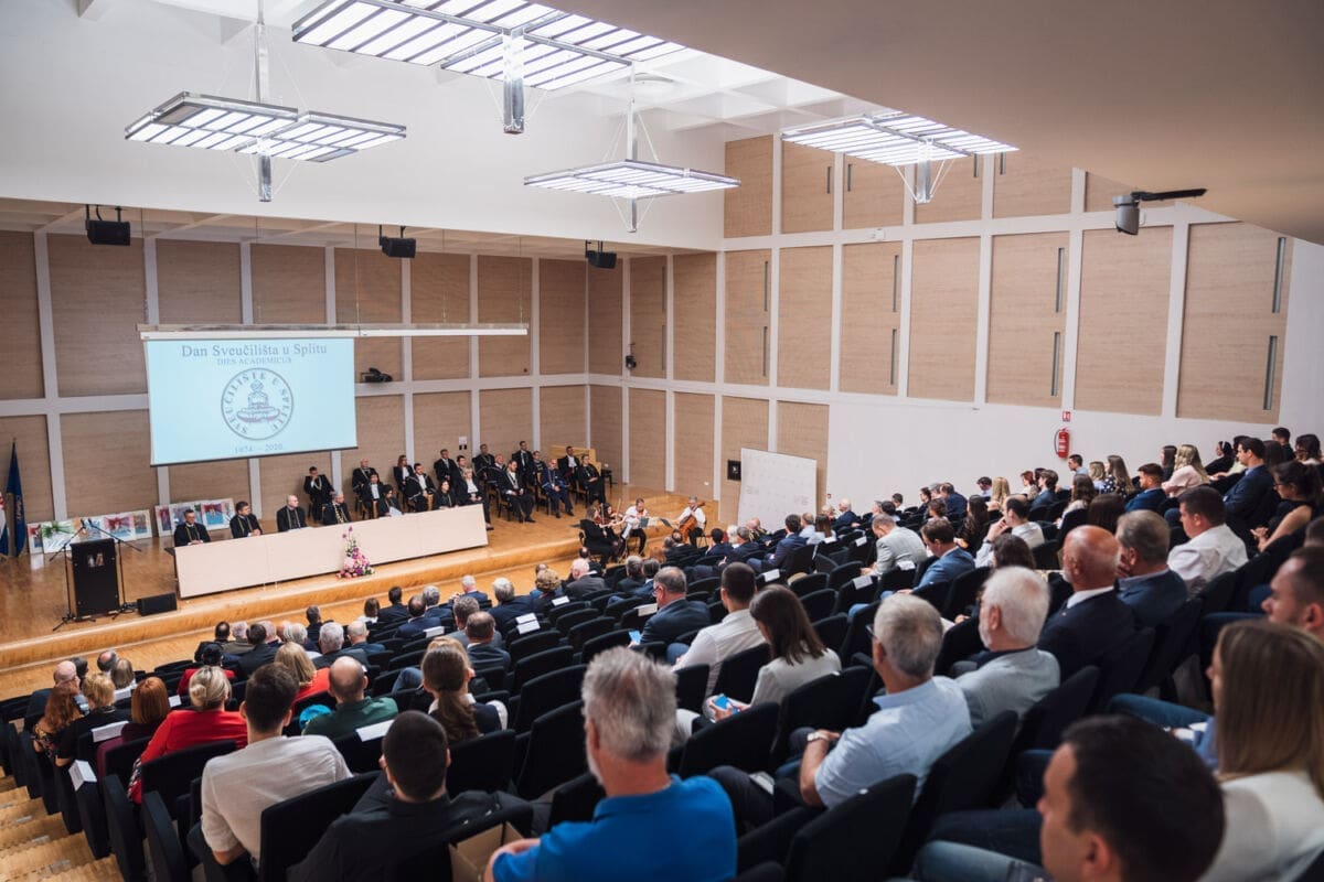 U sklopu programa dodijeljene su nagrade i priznanja. Počasni doktorat dodijeljen je vizualnom umjetniku Matku Trebotiću, dok su plaketu Sveučilišta dobili prof. dr. sc. Roko Andričević (FGAG), Željko Ivančević, dr. med. (MF), izv. prof. dr. sc. Dario Miočević (EF), prof. dr. sc. Lidija Petrić (EF), prof. dr. sc. Ante Tonkić (MF), prof. dr. sc. Marko Trogrlić (FILF), izv. prof. dr. sc. Gloria Vickov (FILF)