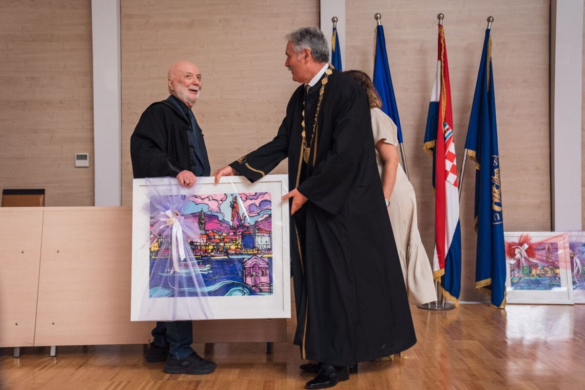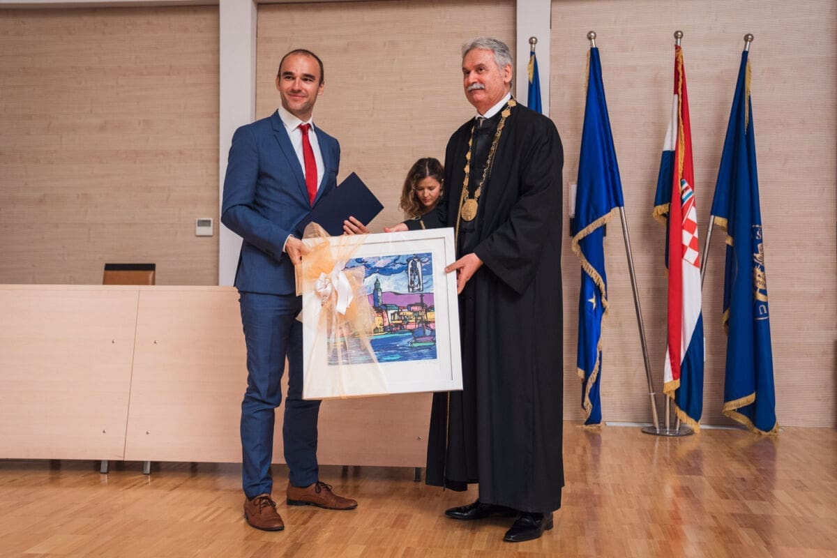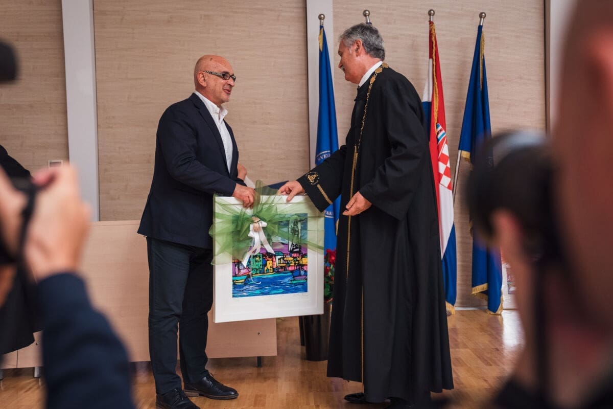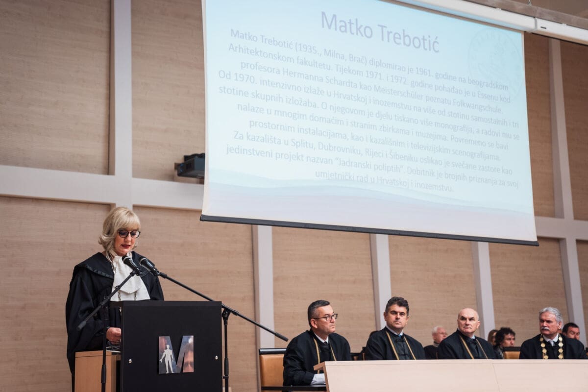 U sklopu programa dodijeljene su nagrade i priznanja. Počasni doktorat dodijeljen je vizualnom umjetniku Matku Trebotiću, dok su plaketu Sveučilišta dobili prof. dr. sc. Roko Andričević (FGAG), Željko Ivančević, dr. med. (MF), izv. prof. dr. sc. Dario Miočević (EF), prof. dr. sc. Lidija Petrić (EF), prof. dr. sc. Ante Tonkić (MF), prof. dr. sc. Marko Trogrlić (FILF), izv. prof. dr. sc. Gloria Vickov (FILF)