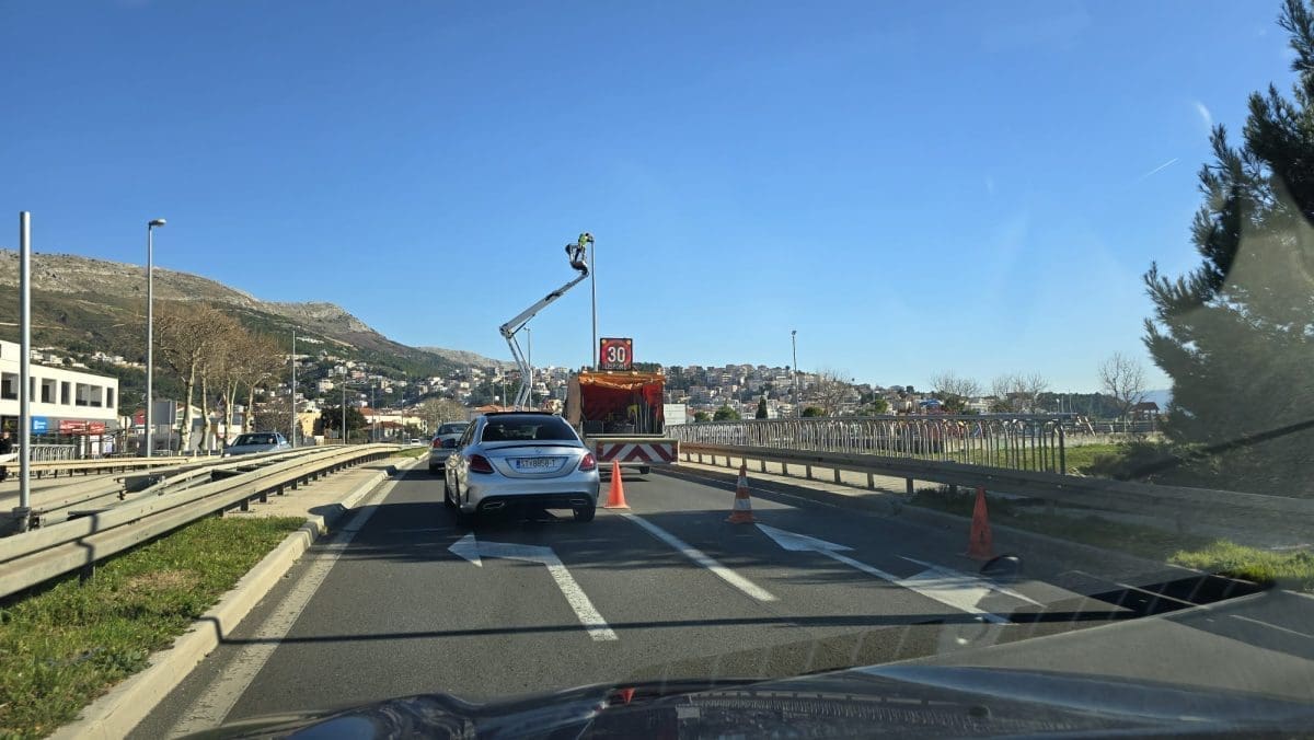 Na jednom dijelu prometnice u smjeru Žrnovnice prometna traka se suzila u samo jednu traku. Zbog toga nastaju sve veće gužve, a vozači su nervozni i nestrpljivi.