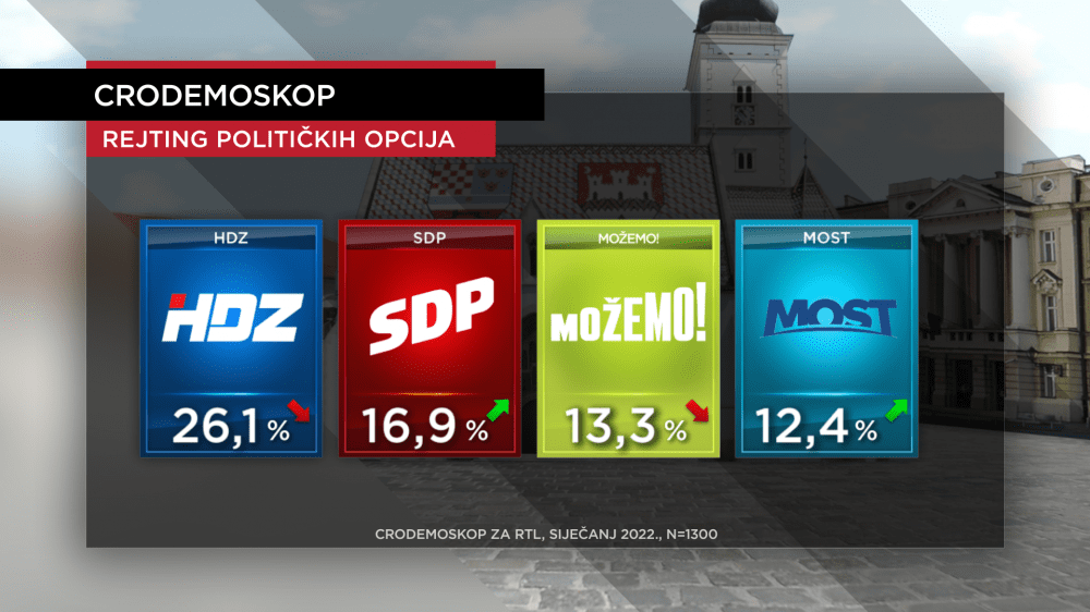 Ima kažnjenih, ali i onih koji su profitirali. Da su danas izbori i dalje bi prvi izbor bio HDZ koji je na čvrstih 26 posto iako i ovaj mjesec bilježe pad (bili na 27,1 posto u prosincu). SDP je i dalje daleko iza, stabilizirali su se na gotovo 17 posto (16,1 u prosincu).