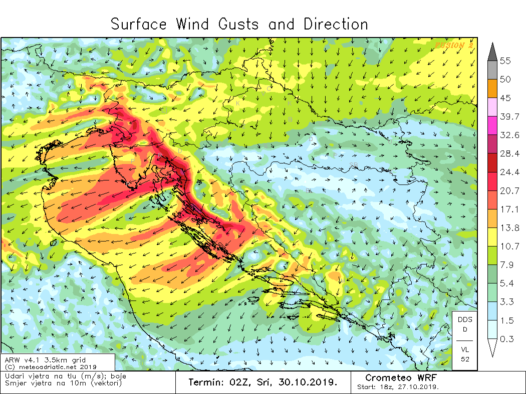 U utorak će biti djelomično sunčano, s više oblaka nego prethodnih dana. Najpromjenjivije na sjeveru Dalmacije gdje će povremeno biti slabe kiše. Bura će prvo zapuhati u podvelebitskom primorju, a proširit će se na sjevernu Dalmaciju. Kasno navečer posvuda jače naoblačenje. Najviše dnevne temperature i dalje visoke, većinom od 19 do 25°C, nešto svježije samo na krajnjem sjeveru Dalmacije.