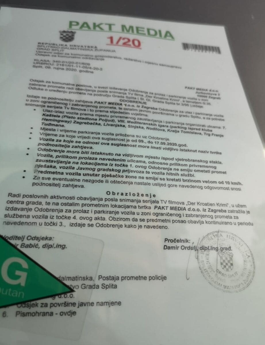 Također doznajemo, da je Paket media koja snima seriju dobila sva potrebna dopuštenja Grada Splita i policije. Snimanje traje do 17. rujna. Velika je ovo promocija za Split i hrvatski turizam jer su seriju pogledali milijuni gledatelja na ARD-u.