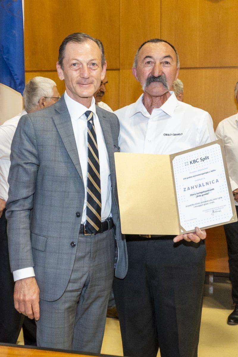 Svečano obilježavanje završeno je pjesmom splitskog Zbora laringektomiranih koji nastupa pod nazivom „Orilo Grmilo“. Sastoji se od pjevača kojima je grkljan odstranjen zbog maligne bolesti. No usprkos tome, novim metodama koje koriste liječnici splitskog KBC-a upravo ovim ljudima je uz pomoć govornih proteza te rehabilitacijskih tretmana kod fonijatara i logopeda, omogućen kvalitetniji socijalni kontakt do te mjere da mogu pjevati. Njihov nastup zahvala je Klinici za bolesti uha, nosa i grla s kirurgijom glave i vrata i čitavom osoblju što su im spasili živote.