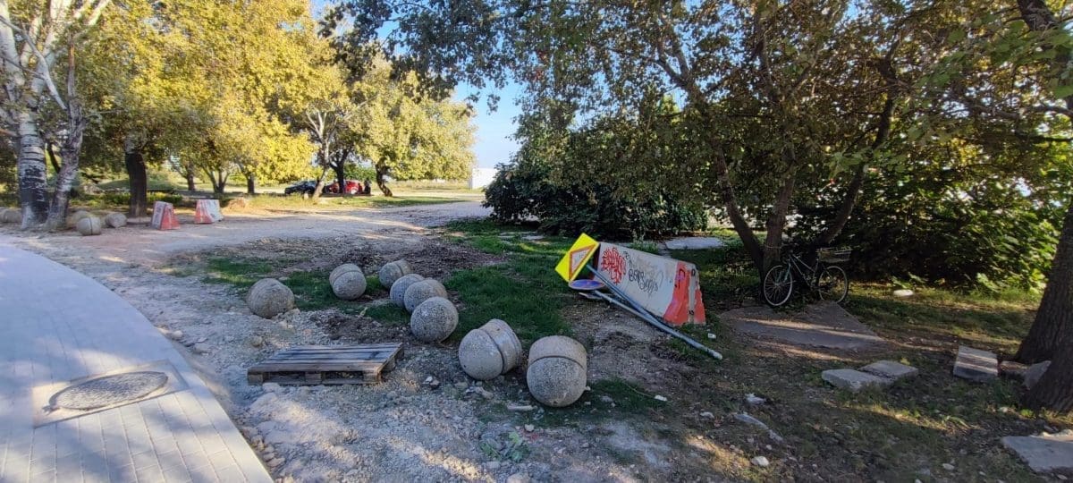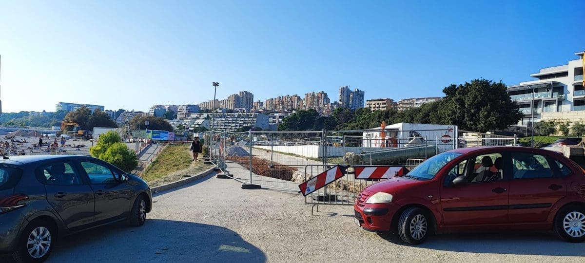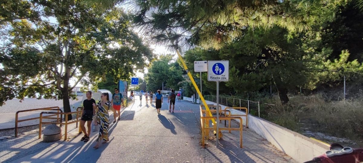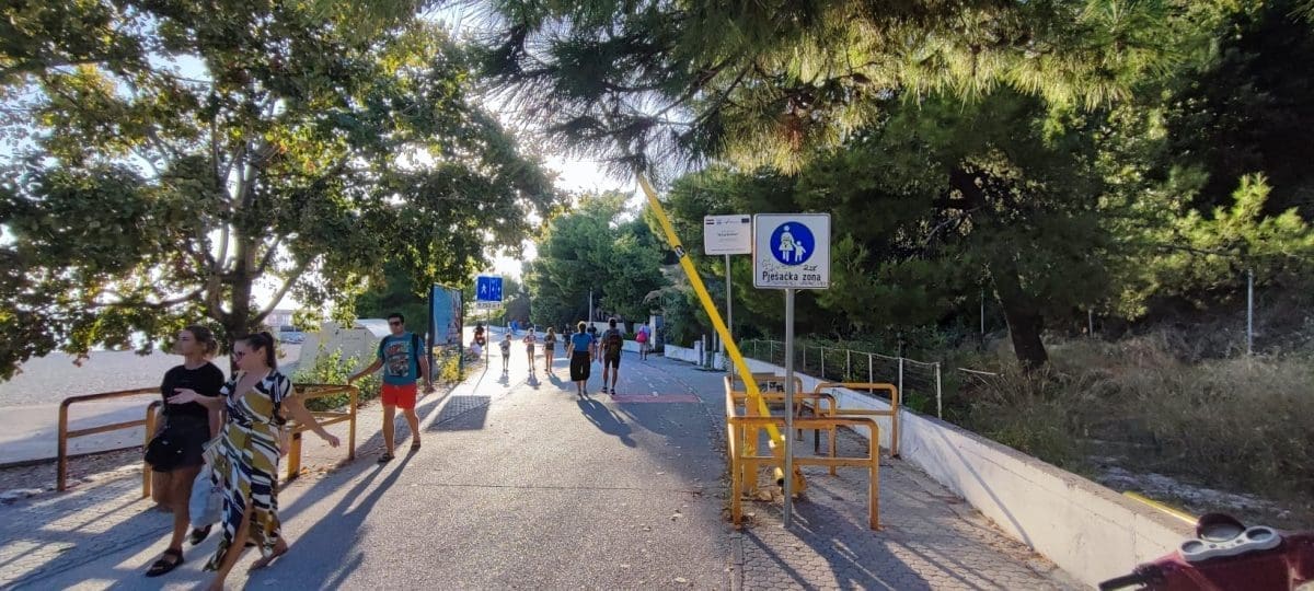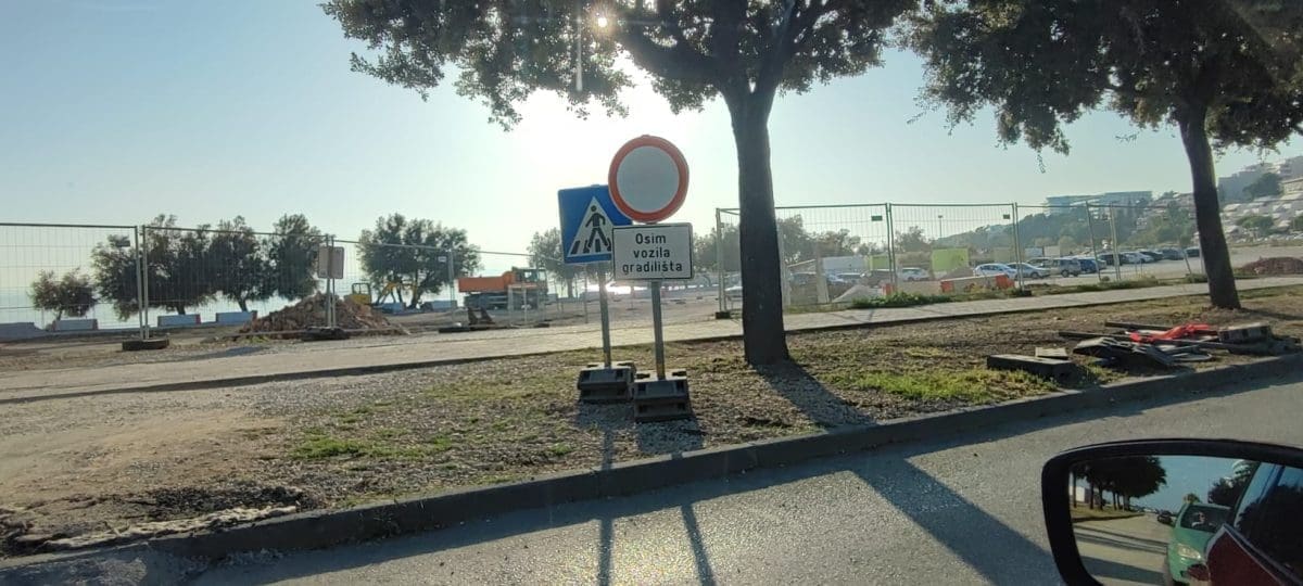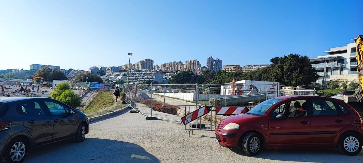 Do plaže za osobe s invaliditetom se može doći, ali do ostalih plaža ne bi smjeli vozilom. Na križanju Šetališta i Velebitske, pored trgovine Tommy i nekadašnje autobusne stanice linije broj 15, su radovi i ograda zbog kojih se ne može dalje proći vozilom. Da bi se došlo do drugih plaža kod hotela Amphora otvoren je improviziran makadamski put, ali samo za vozila gradilišta. Kod hotela Amphora radovi su na uklanjanju poslovne građevine od drugog mjeseca. Međutim, baš kao i u Velebitskoj ulici, nitko ne nadzire prometovanje zbog čega smo na gradilištu na platou fotografirali parkirana vozila i automobile koji su se tuda vozili.