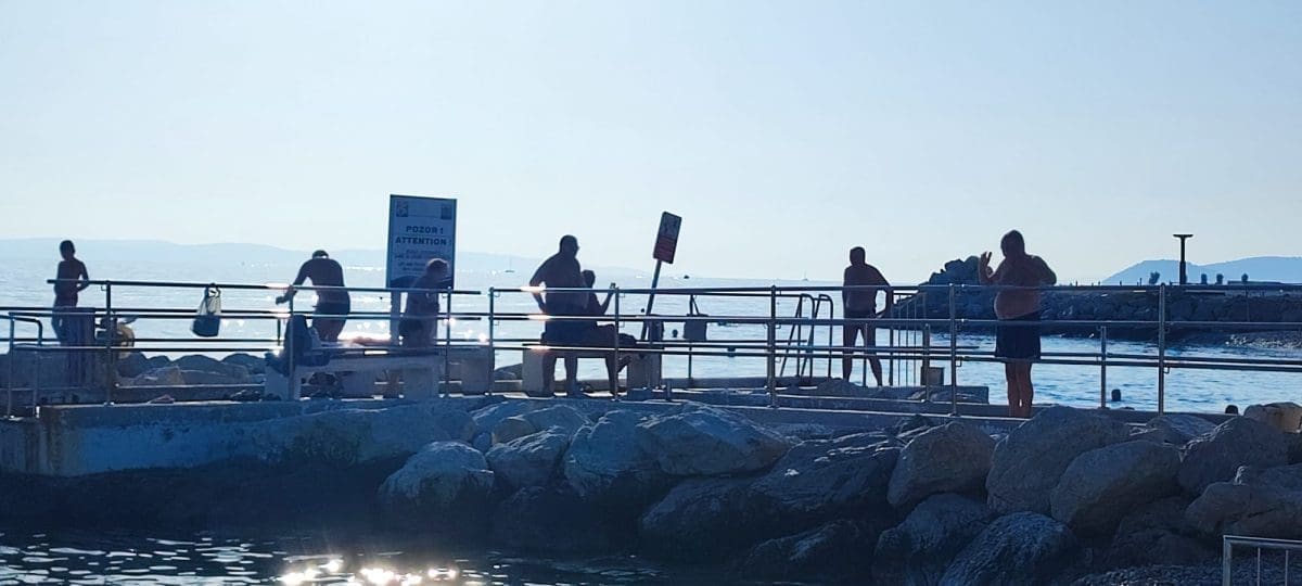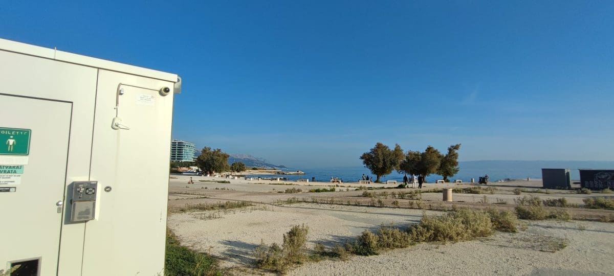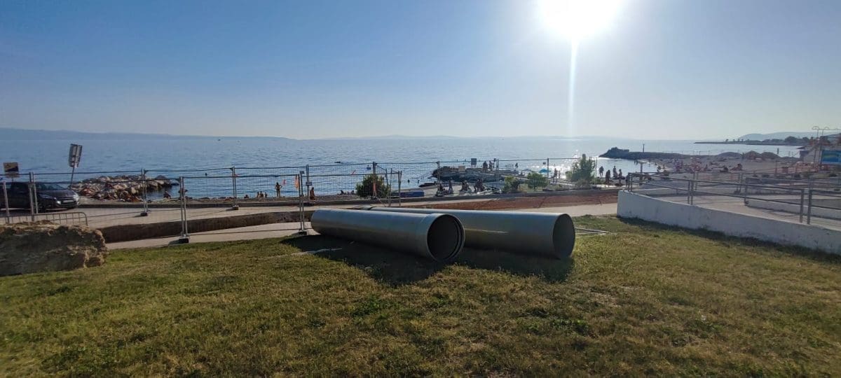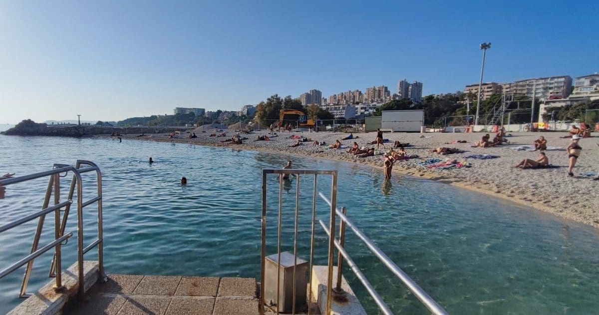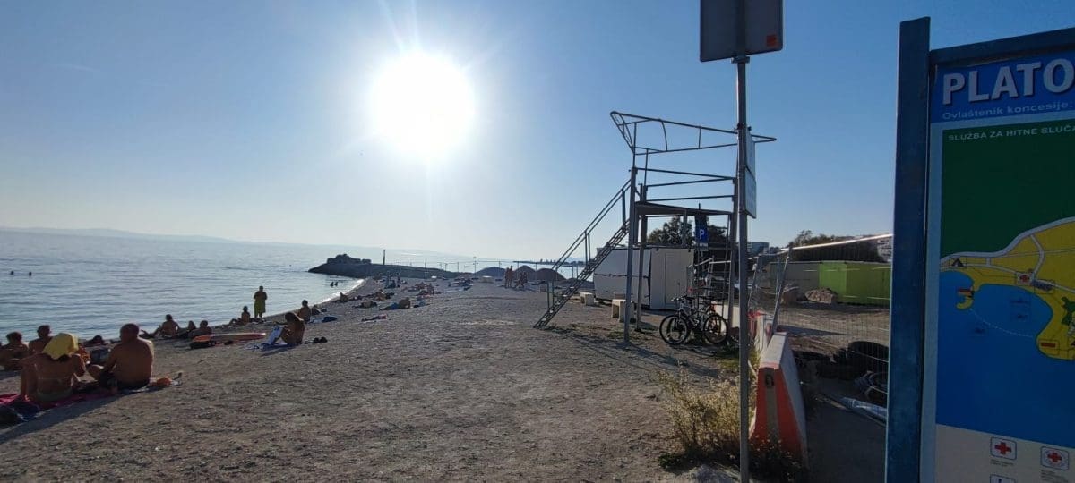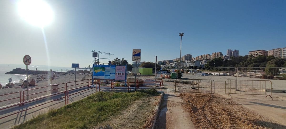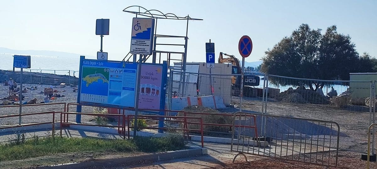 Nastavljamo prema plaži za invalide. Zbog radova više nemaju prilaz plaži, govore nam kupači, već dolaze prilazom kod Ronilačkog kluba. Vode na tuševima opet ima nakon što je prije par tjedana nije bilo, ali zato više nema rampe za spuštanje osoba u more. Kao ni kemijskih WC-ova ni spasioca. Rampu i WC-ove su otklonili prvog listopada zbog završetka sezone, kažu nam kupači.
