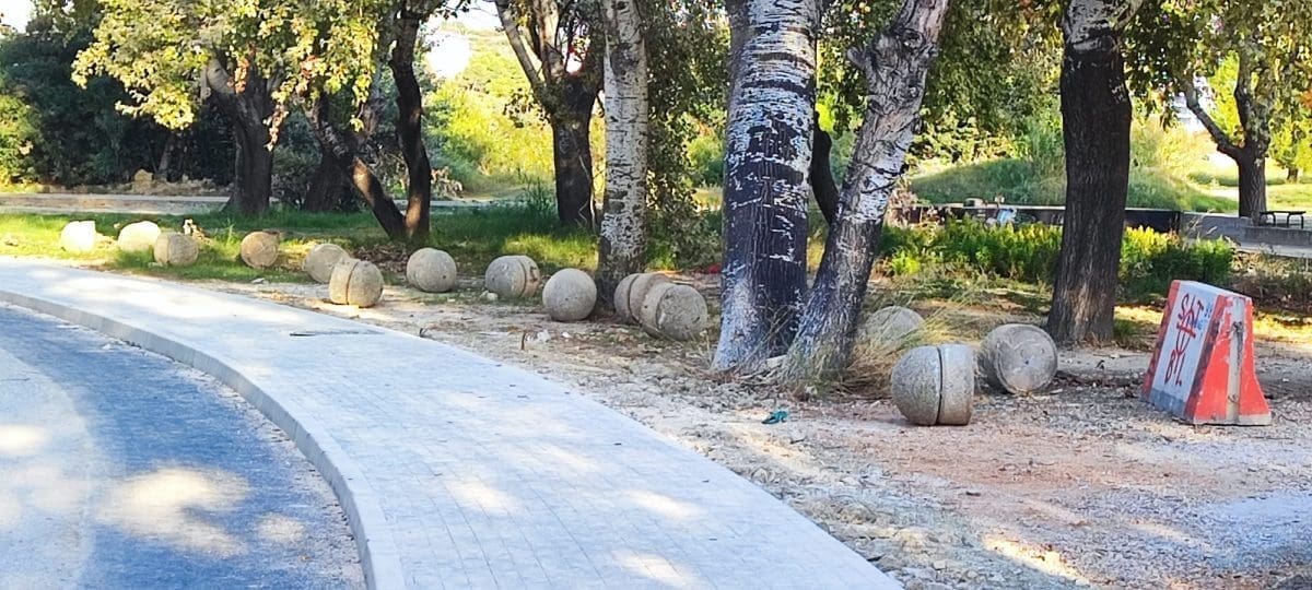 Rampa pred ulaz na pješačku zonu na plaži Trstenik je podignuta, što je već bio slučaj ovog ljeta. Iako od šetališta vozila ne bi smjela dolaziti, fotografirali smo vozača motocikla koji je iskoristio prigodu i parkirao se na pješačkoj zoni. Biciklist s kojim smo razgovarali nam je rekao da je rampa podignuta posljednjih par tjedana, ali nije vidio niti jedno vozilo. Na plaži na Žnjanu pored plaže Trstenik prošli smo pored nekoliko parkiranih automobila. Prometni znakovi i “bubamare” – kamena prometna signalizacija bačena po strani. Vode u tuševima ima.