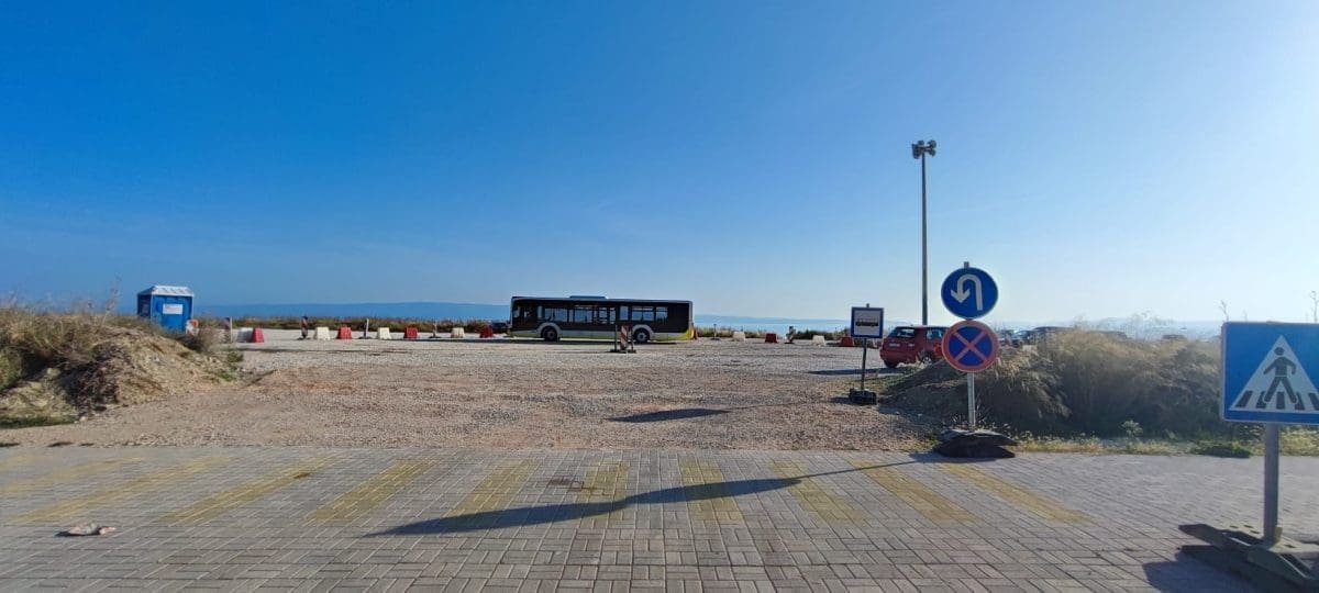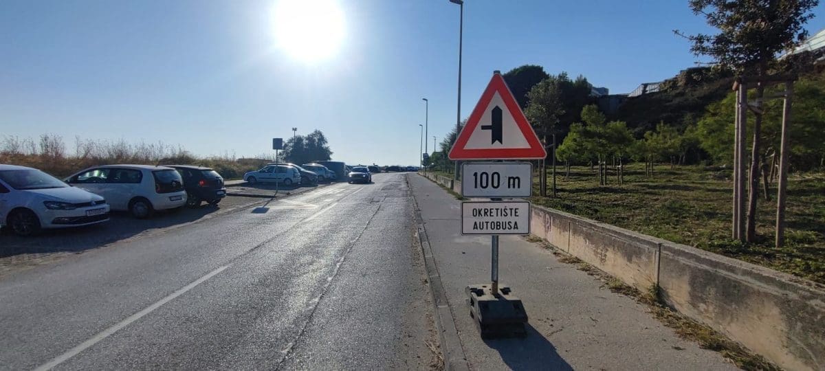 Do platoa svi drugi vozači mogu doći ulicom Put Žnjana. Cesta je asfaltirana, ali nije dovoljno široka da bi se mimoišli automobili. Na makadamskom putu pored Šetališta Ivana Pavla Drugog par stotinjak metara od hotela Amphora privremeno je okretište autobusne linije broj 15. Tako je posljednjih mjesec dana i ostat će nekoliko mjeseci, kaže nam vozač. Na okretištu je kemijski WC i prometna signalizacija.