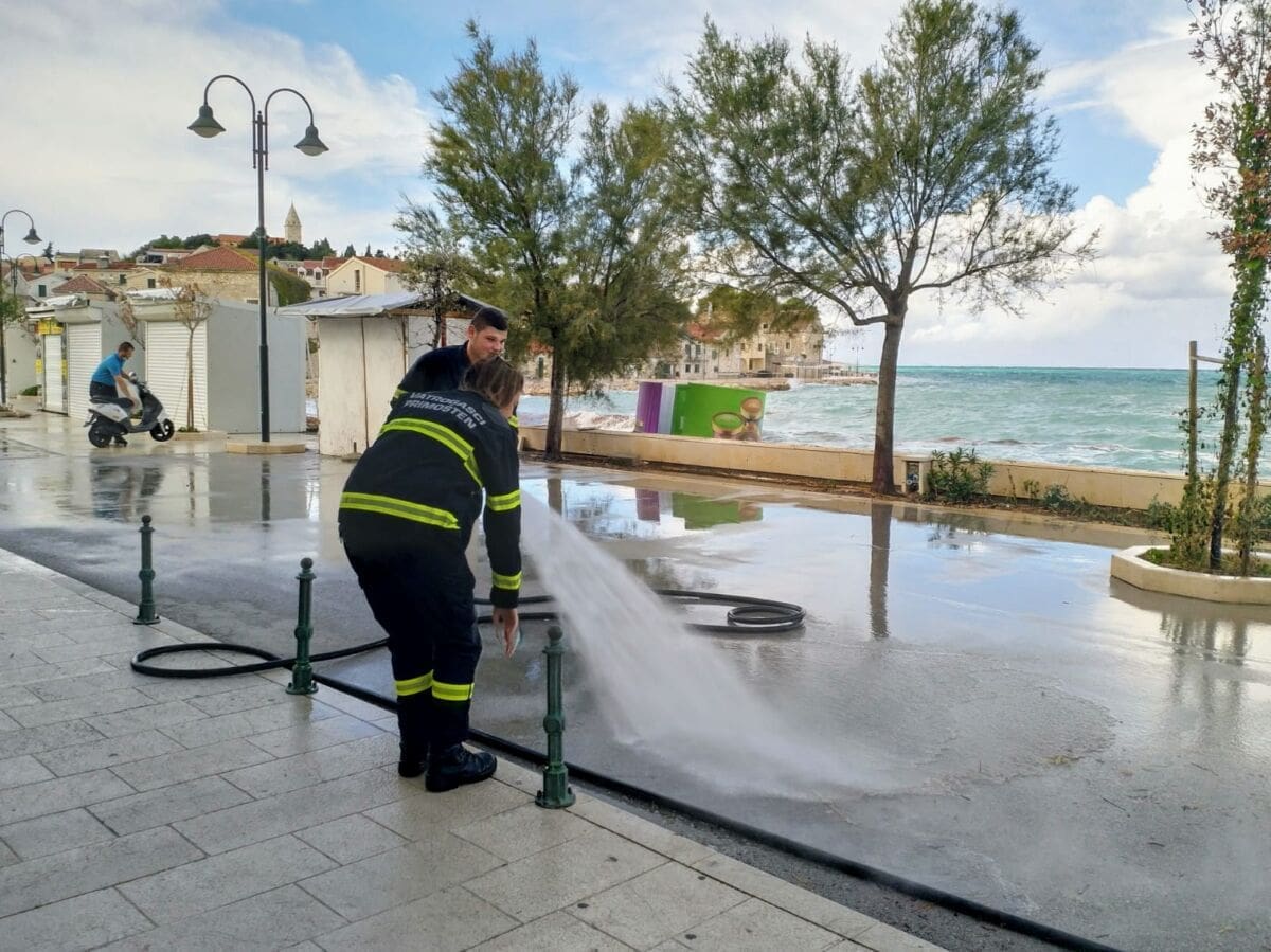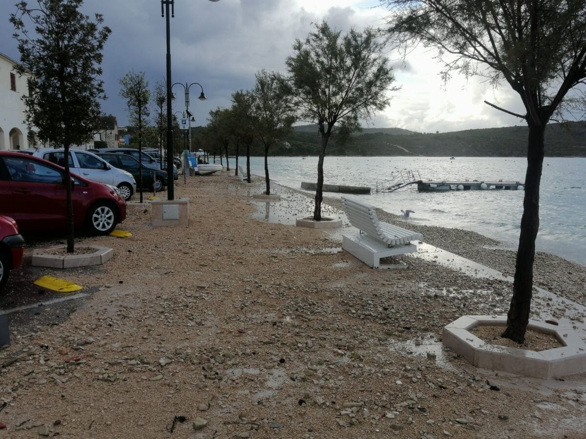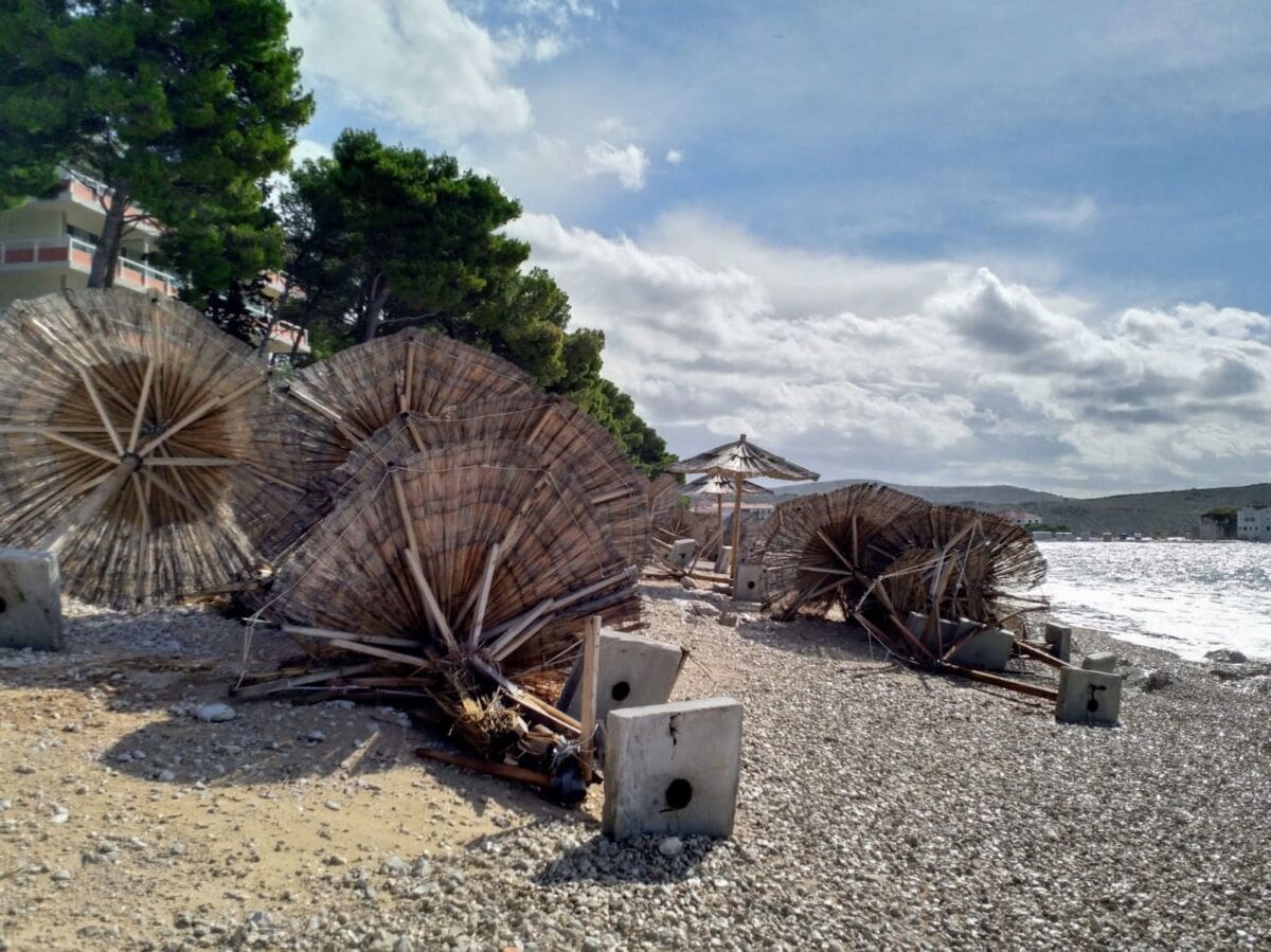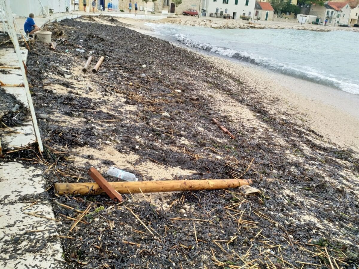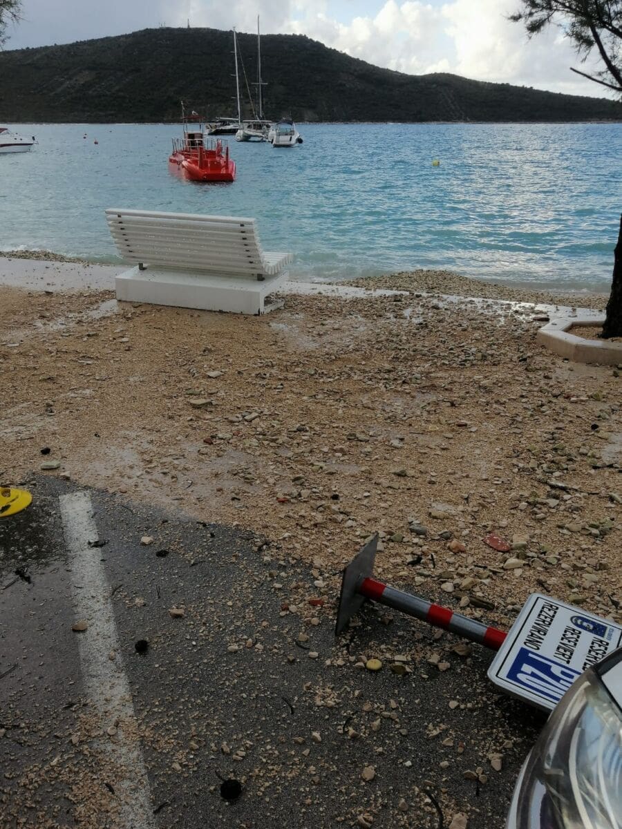 Udara lebića i pulenta preko 100 km/h bilo je i u Primoštenu. Nakon što je vjetar tijekom noći nanio velike količine žala, kamenja i pijeska na obalu, i nakon što su štete uklonili vatrogasci i komunalci, oko 11 sati danas stigao je novi "val" vjetra i valova koji su ponovno napravili štetu.
