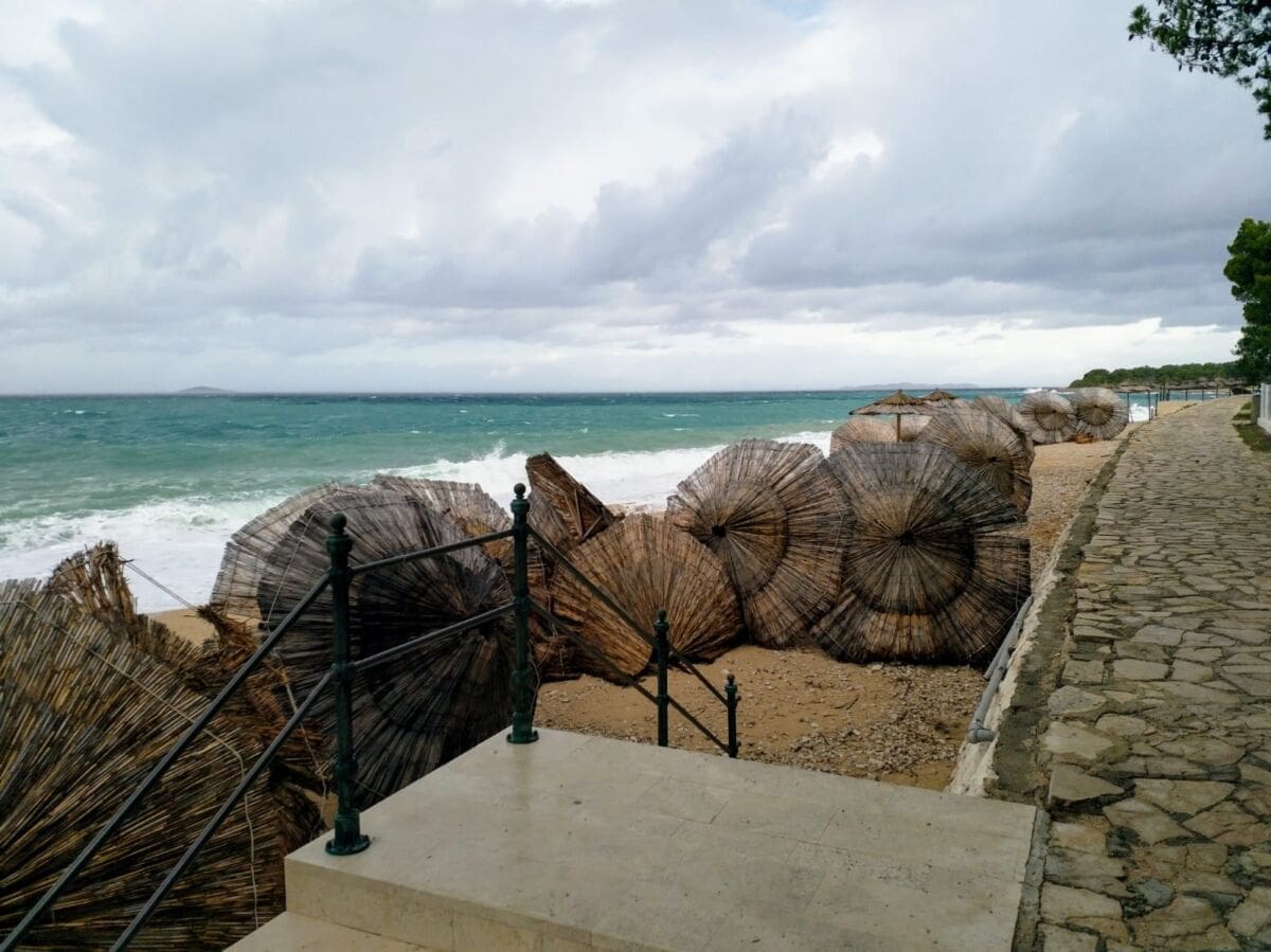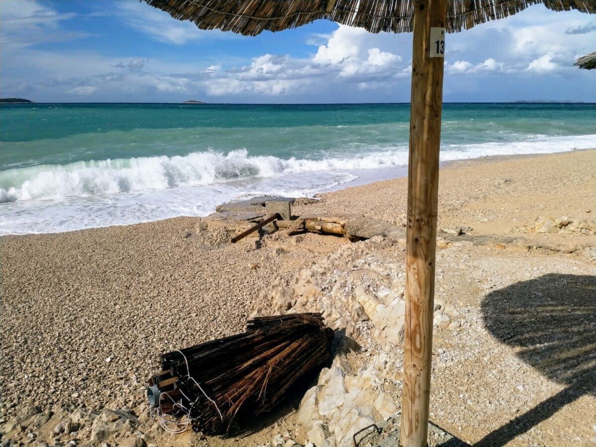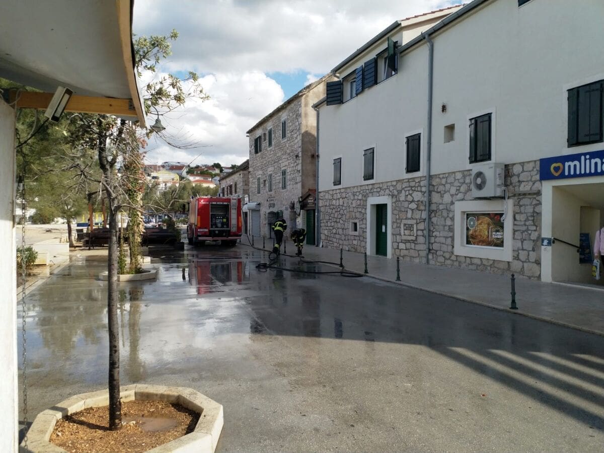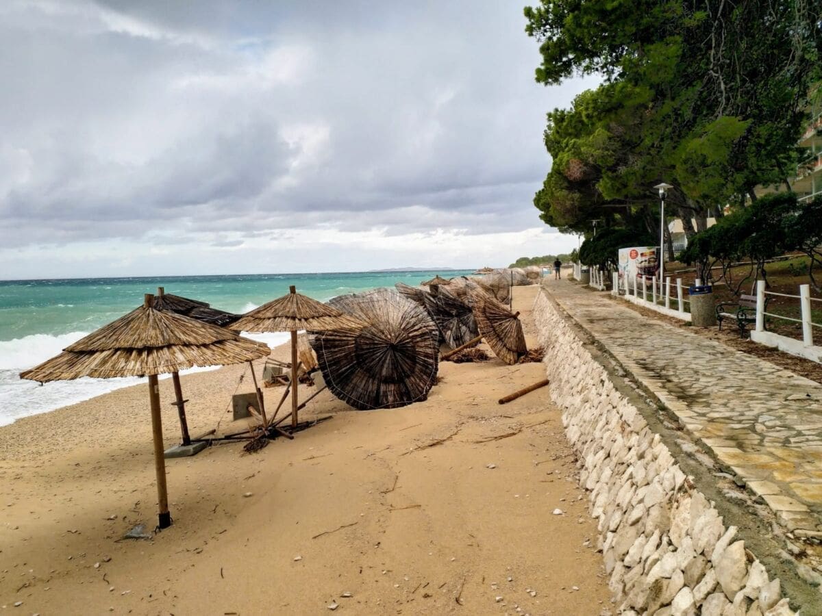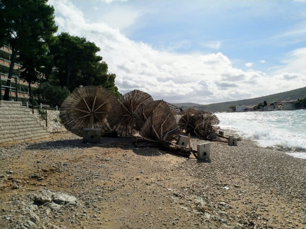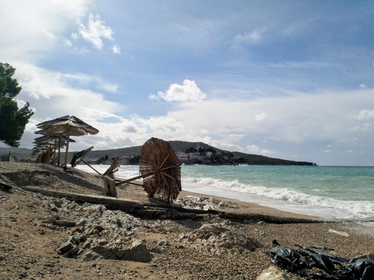 Udara lebića i pulenta preko 100 km/h bilo je i u Primoštenu. Nakon što je vjetar tijekom noći nanio velike količine žala, kamenja i pijeska na obalu, i nakon što su štete uklonili vatrogasci i komunalci, oko 11 sati danas stigao je novi "val" vjetra i valova koji su ponovno napravili štetu.