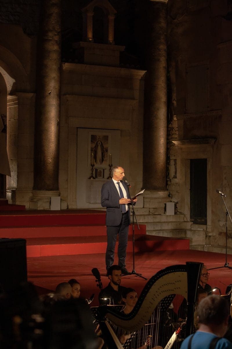 "Velika mi je čast i zadovoljstvo pozdraviti vas s jedinstvene monumentalne pozornice antičkog Peristila uoči ove najveće kulturne manifestacije. Split je grad kulture i multikulturalnosti. Postići da obje dimenzije žive paralelno i u harmoniji zadatak je i izazov svakog grada sa zaštićenom kulturnom baštinom", kazao je, između ostalog gradonačelnik Puljak i zaželio novom intendantu HNK Split i ravnatelju Splitskog ljeta Vicku Bilandžiću i njegovim suradnicama i suradnicima zaželio da uzbuđenje koje svi osjećamo pred početak Festivala pretoče u umjetničku energiju i vrhunske izvedbe.