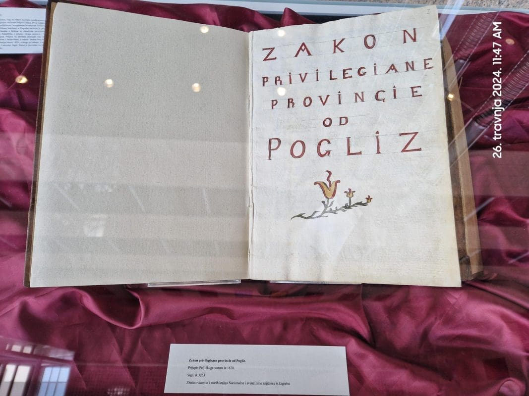 Dio svečanosti bila je i prigodna, jednodnevna izložba tematski povezana s građom iz fonda Nacionalne i sveučilišne knjižnice u Zagrebu. Tu svakako valja istaknuti prijepis Poljičkoga statuta iz 1670., koji je dio fonda Zbirke rukopisa i starih knjiga NSK.