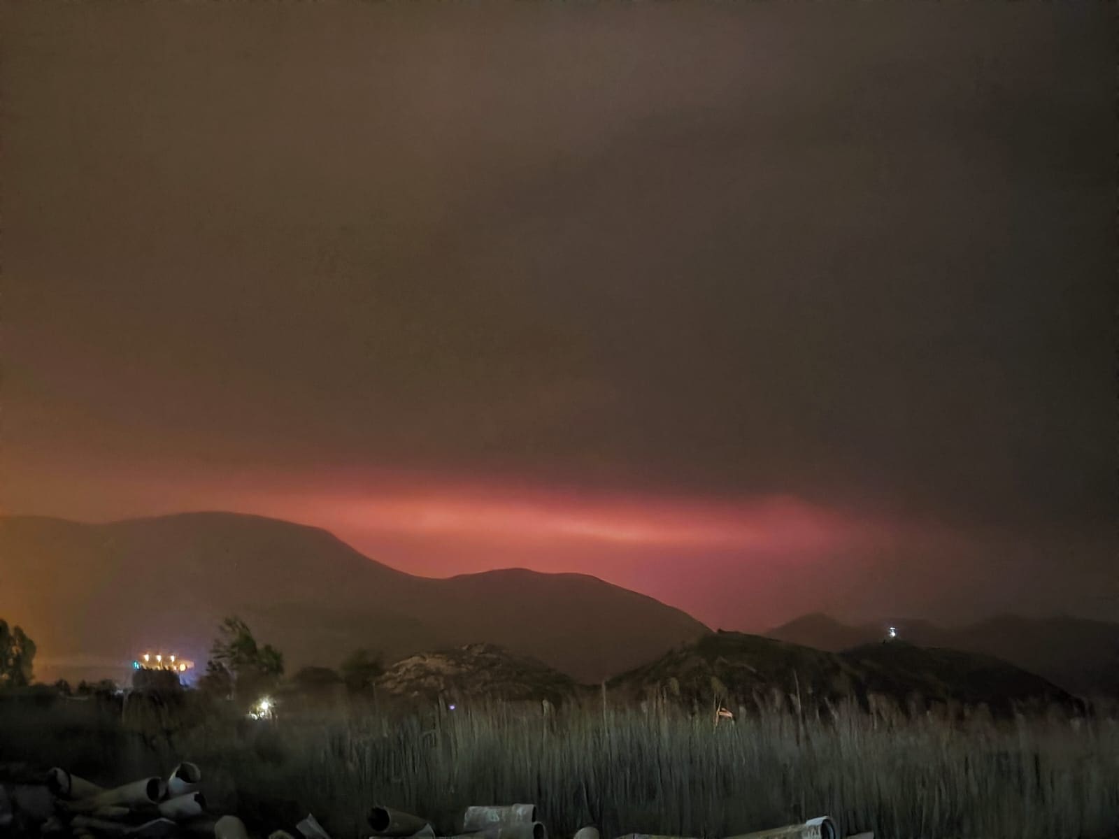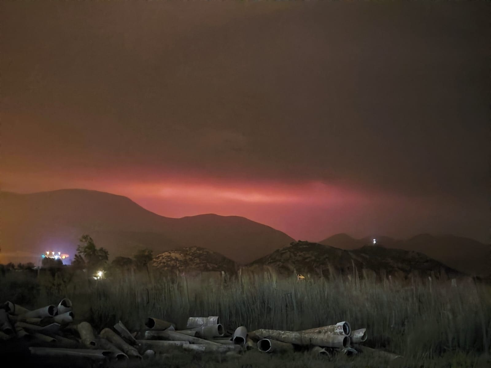 Fotografije snimljene oko 22 sata pokazuju da je vatra i dalje bila vrlo aktivna, uz visoke plamene jezike, gust dim i raznošenje iskri nošeno vjetrom. Na prizorima s terena vidi se kako vatrogasci s prometnice pokušavaju zaustaviti širenje požara prema obraslom i teško pristupačnom terenu.