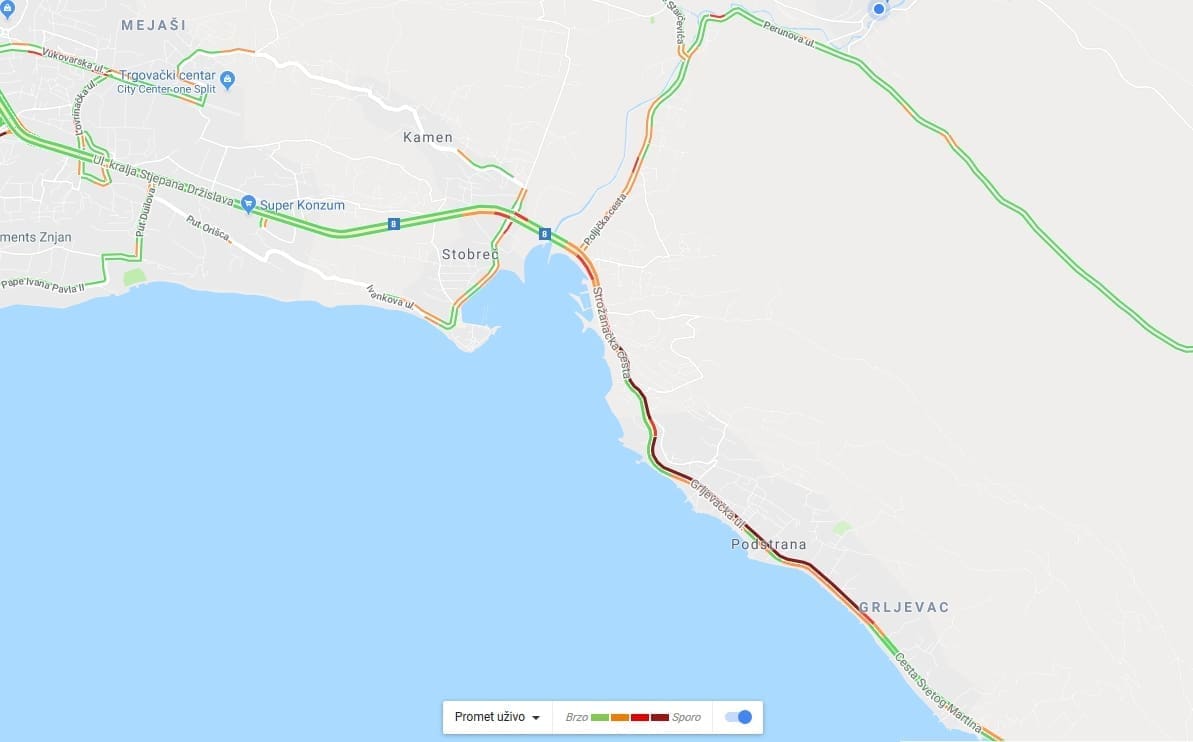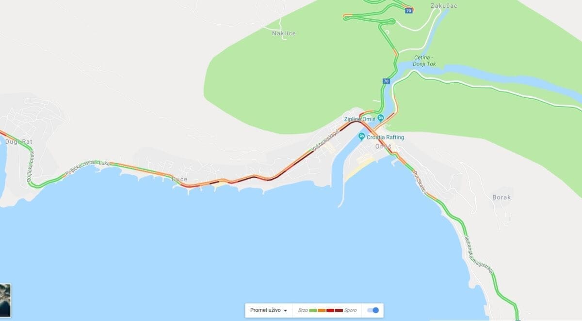 Još veće gužve su oko Splita. Tako se oko 10 sati formirala 2 kilometra dugačka kolona od Grljevca do skretanja za Žrnovnicu na Jadranskoj magistrali iz Omiša. Gužve također vladaju na dionici od Duća do Omiša.