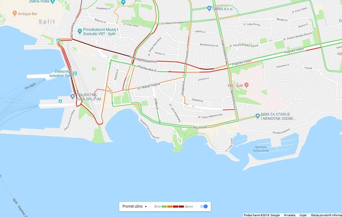 Prema informacijama s terena, velike gužve ponovno su se stvorile u Zvonimirovoj ulici u Splitu tijekom jutra. Prvo su gužve počinjale od benzinske na Pojišanu, ali sada se kolona počinje već kod križanja sa Dubrovačkom. Uobičajeno, gužve se bilježe i u Zagrebačkoj ulici. Podsjetimo, jutros se, u sklopu nove regulacije prometa u cilju smanjenja gužvi uklonio pješački na skretanju iz Zagrebačke prema Obali kneza Domagoja, a sada već bivši pješački ograđen je metalnim ogradama.