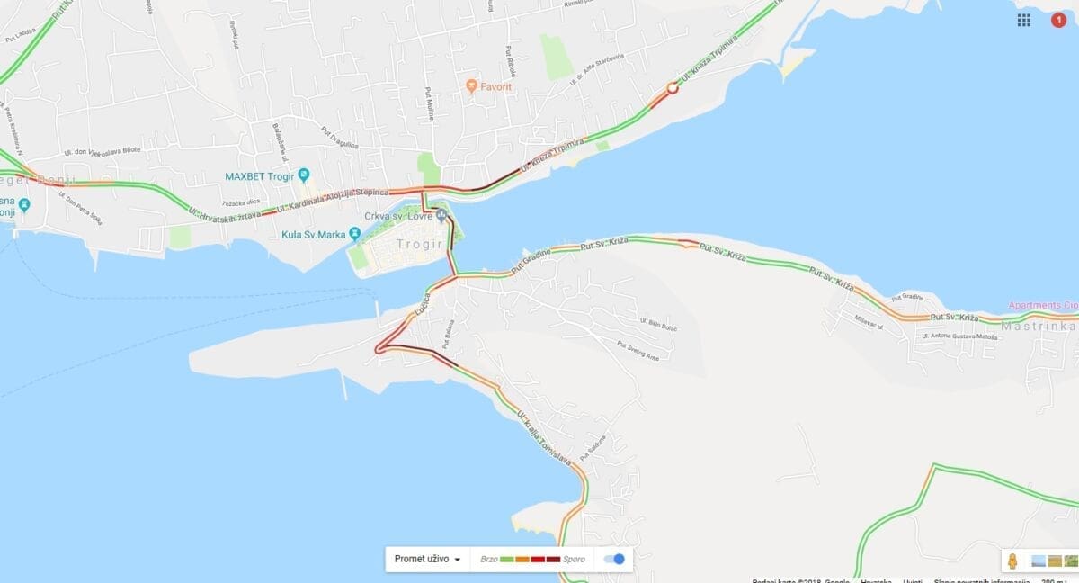 Kroz Trogir promet povremeno teče usporeno, ali većih gužvi zasad nema.