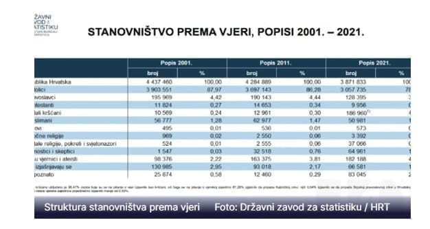 Katolika 639.408 manje nego na popisu iz 2011.