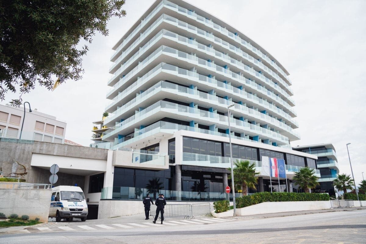 Oni trenutno borave u luksuznom Hotelu Amphora na Žnjanu. Na samom dijelu oko hotela svi su ulazi strogo čuvani od strane policijskih službenika, a vidljivo je i da se svi djelatnici provjeravaju prilikom ulaska u hotel.