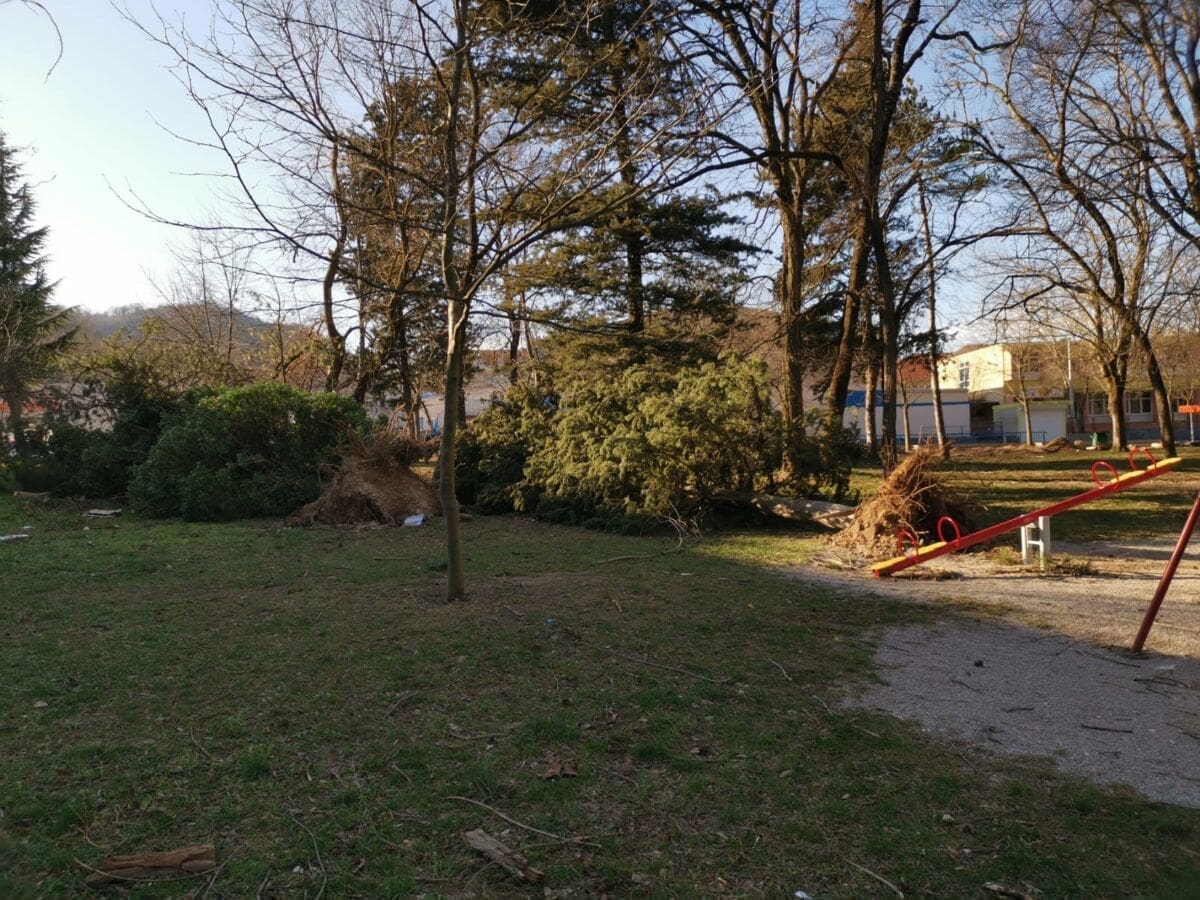 Bura je prouzrokovala kaos i u Gradskom parku u centru grada Trilja gdje je porušeno nekoliko stabala, a tokom dana u komunalno gospodarstvo Grada Trilja pristižu dojave o porušenim stablima, prevrnutim kontejnerima i ostaloj šteti u većini gradskih naselja.