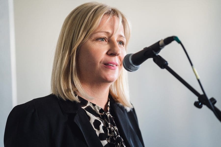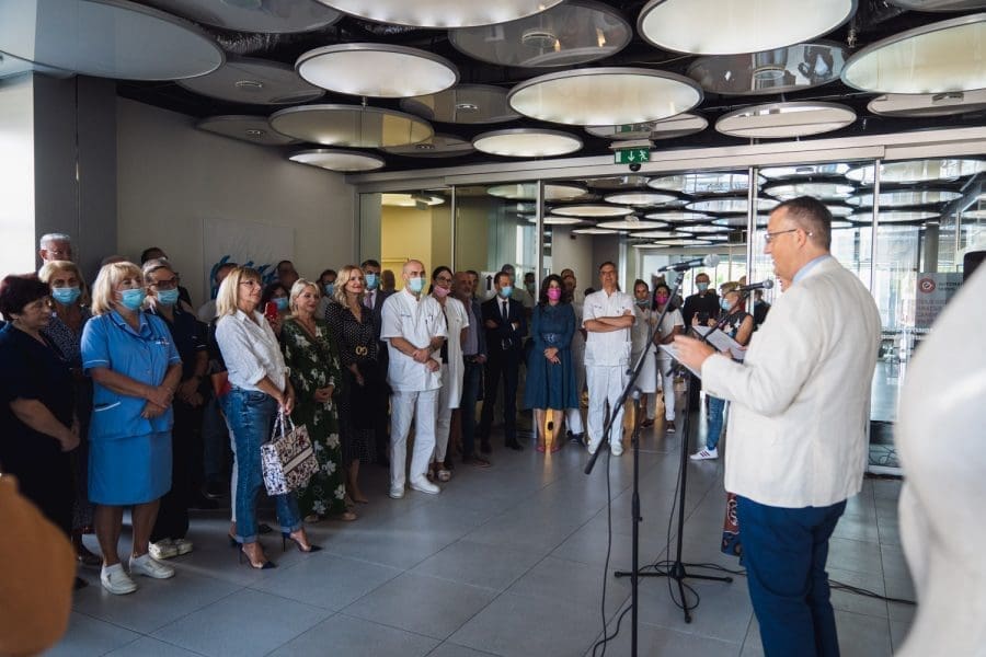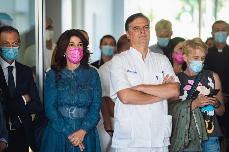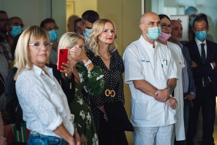 Pokrovnu tkaninu s eksponata skinula je viša medicinska sestra primalja Iva Erceg, najstarija primalja koja trenutno radi u splitskom rodilištu s 44 godine radnog staža.
