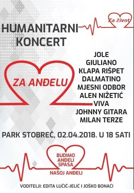 Na Uskrsni ponedjeljak, 2. travnja s početkom u 18 sati, u parku u Stobreču organizira se humanitarni koncert na kojem će se prikupljati sredstva za pomoć pri liječenju mlade Anđele Knežević.