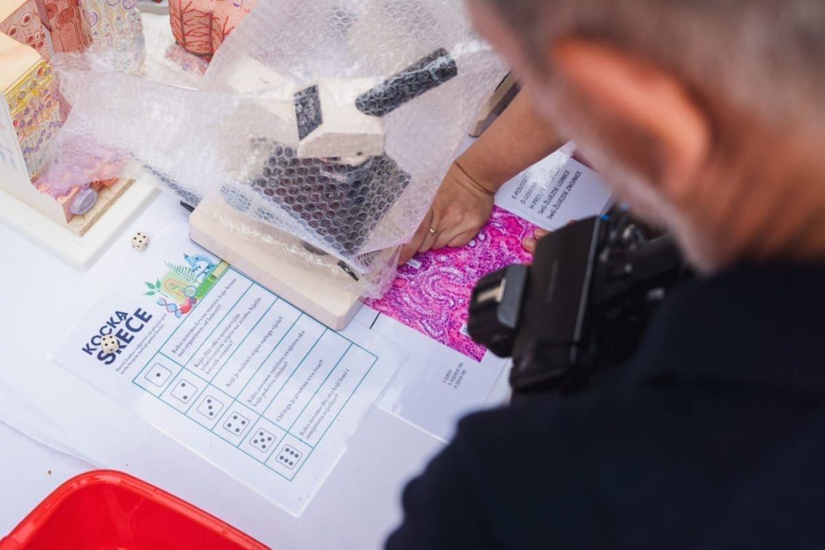 Na štandu do osnovnoškolci su pod mikroskopom uspoređivala zmijsku i ljudsku krv.