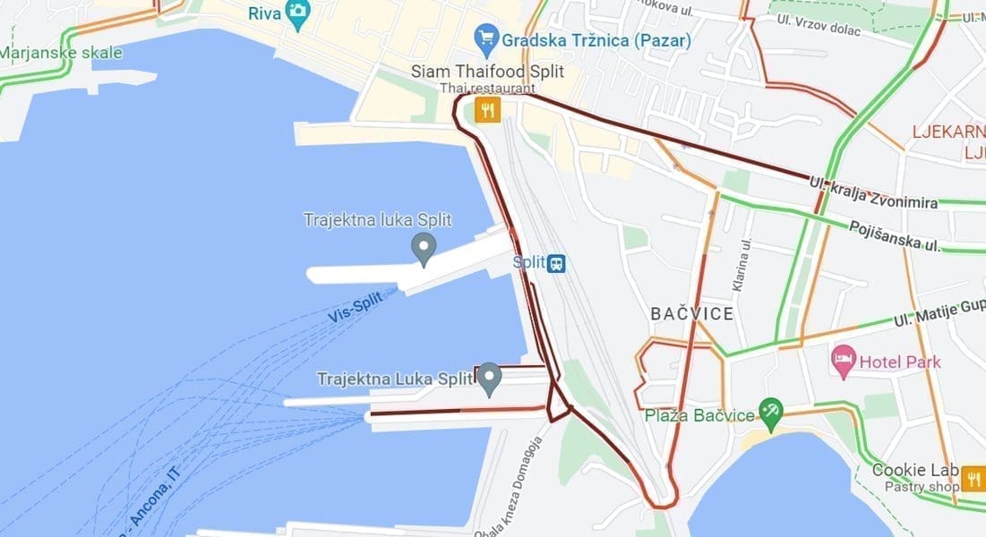 Jutros se kilometarska kolona vozila stvorila od bolnice Firule, pa sve do splitskog Pazara i Trajektne luke. Veliki prometni kolaps i goleme gužve prouzročile su kašnjenja u pomorskom prometu.