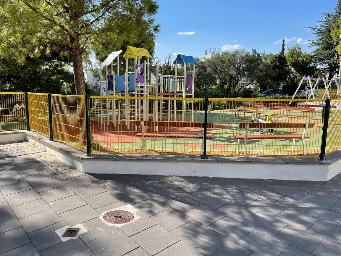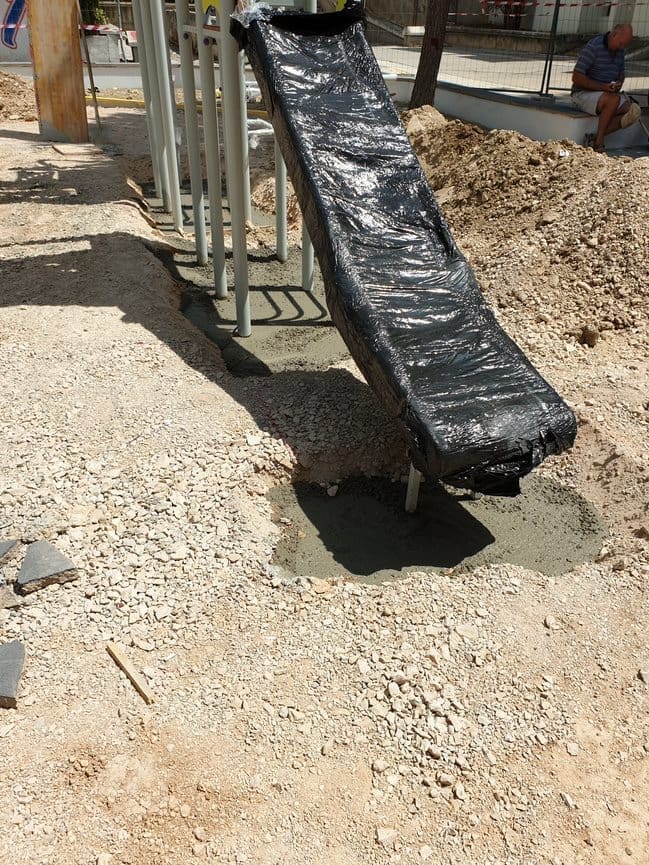 Izvođač je izvodio radove rušenja starih betona, iskope, nove zidiće i rubnjake, antistres podlogu i ogradu igrališta. Za montažu igračaka, stolova i klupa bila je zadužena firma Invent CO d.o.o.