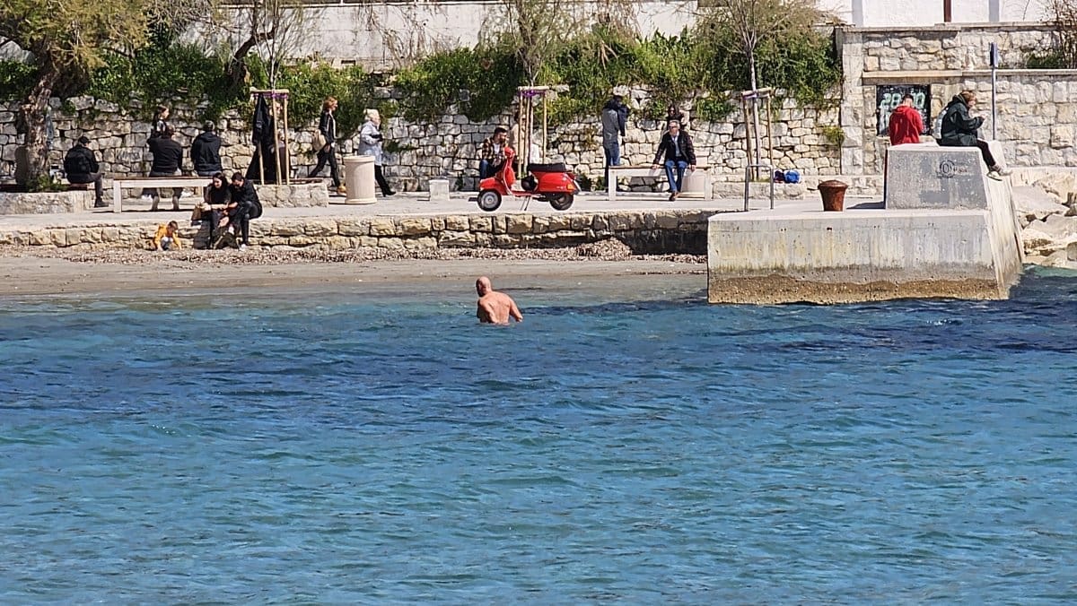Sa sunčanim vremenom, stigli su nam i prvi ovogodišnju turisti koji su unatoč temepraturama od 14 Celzijevih stupnjeva uživali u morskim radostima.