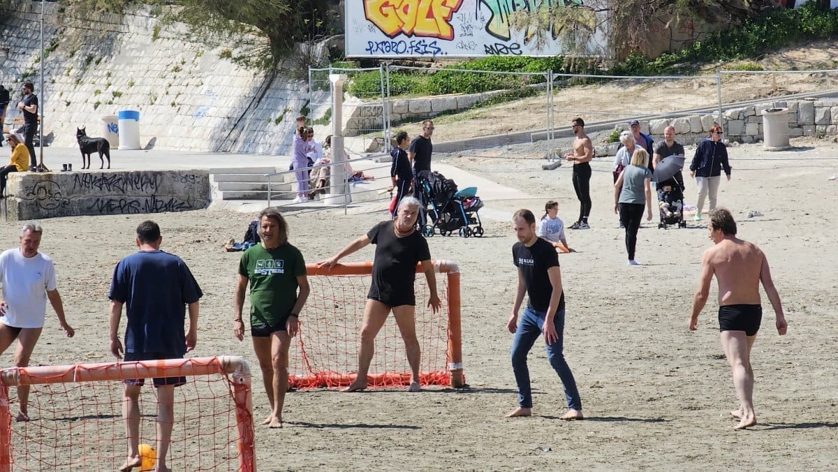 Smijeh, igra i veselje, sve se to moglo vidjeti danas u Splitu. Igrao se nogomet uz plažu, a nije izostao ni uvijek popularni picigin u kojem su sudjelovali poznati piciginaši poput Gorana Karana.
