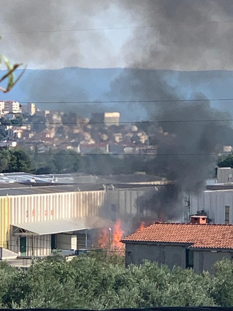 Vatra je zahvatila gomilu drvenih paleta, a kako doznajemo planulo je i nekoliko vozila. Na požarište je u kratkom roku stiglo najmanje četiri vatrogasna vozila sa splitskog područja, a uskoro se očekuje dolazak dodatnih snaga.