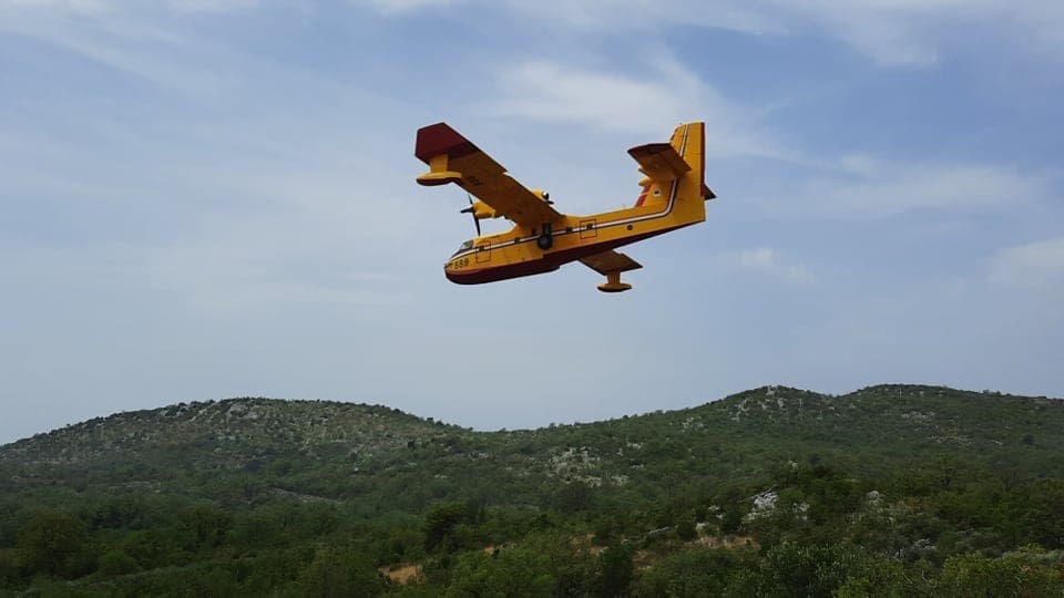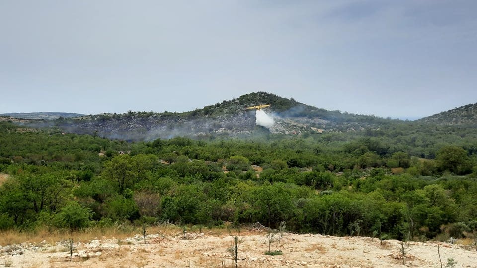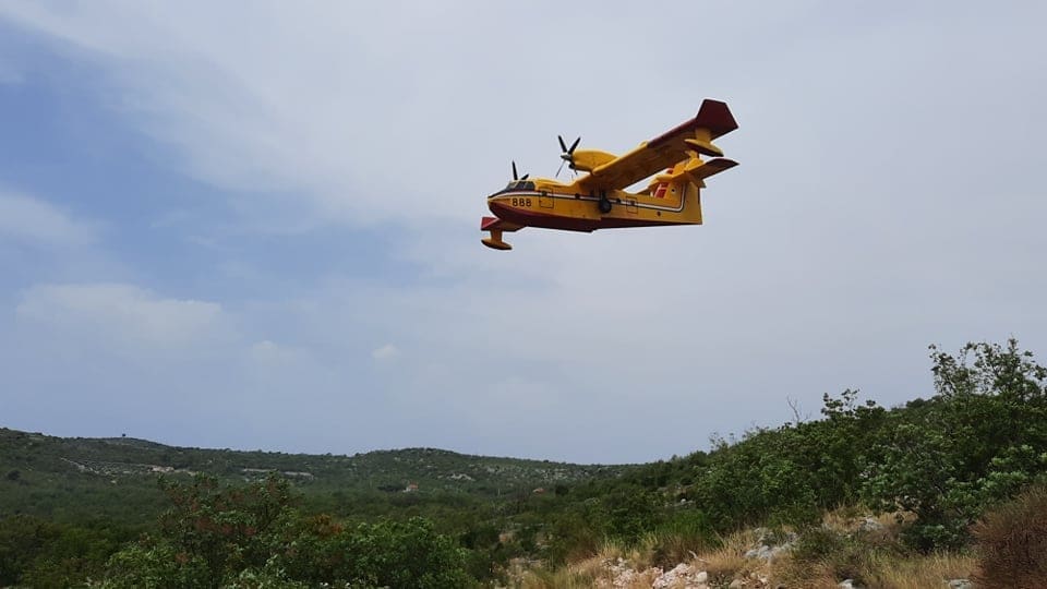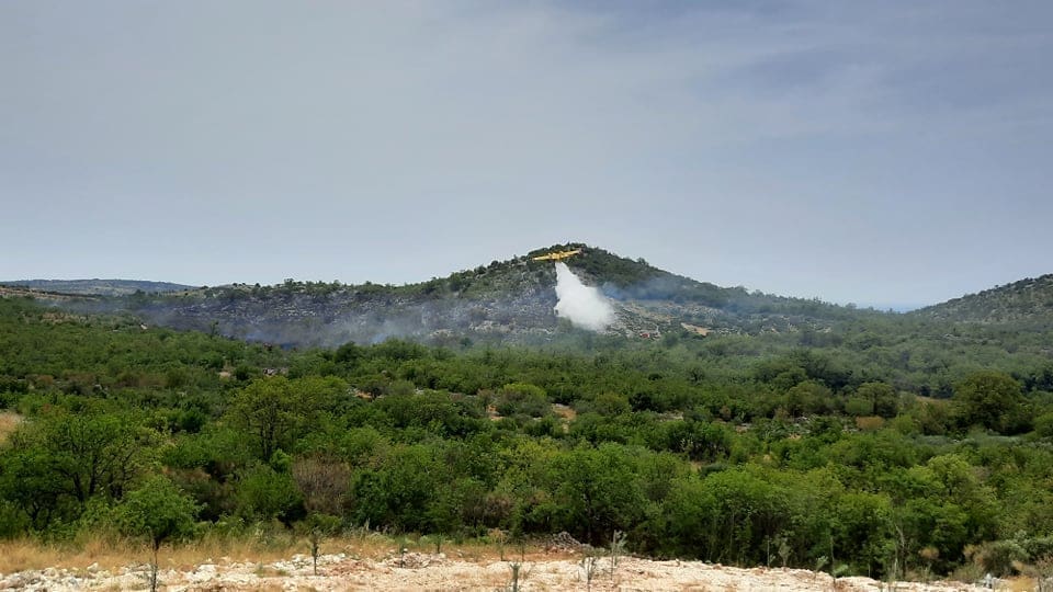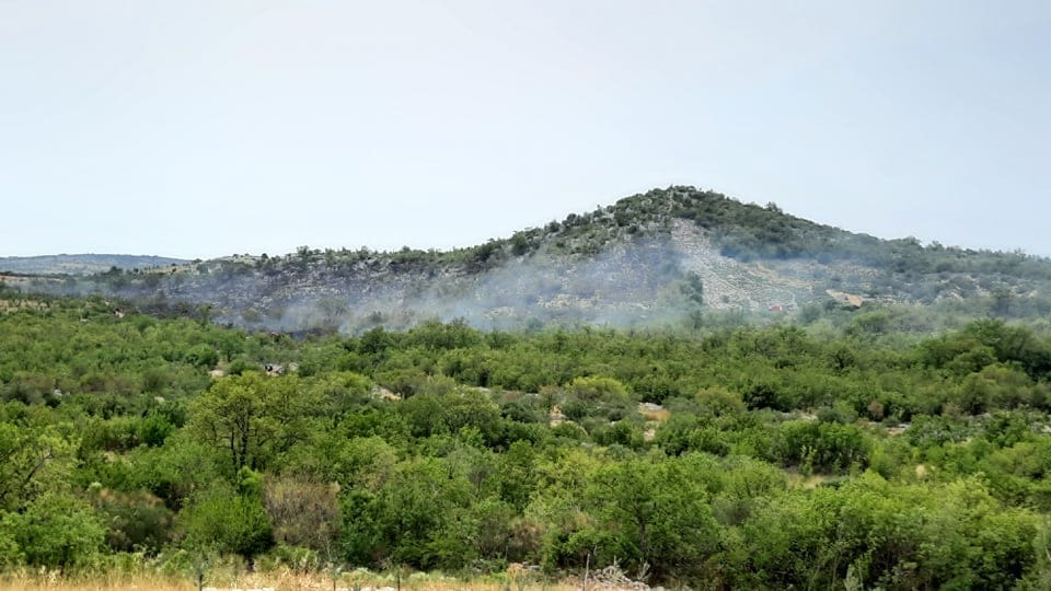 Gori trava i nisko raslinje, a u gašenju sudjeluju i zračne snage. Jedan kanader je na terenu, a u pomoć su pozvana još dva.