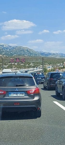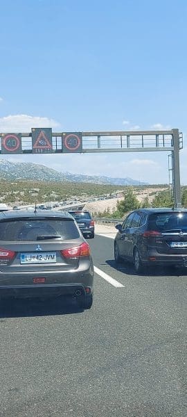 Problem stvara i vozilo u kvaru na autocesti A1, između čvora Maslenica i tunela Sveti Rok u smjeru Zagreba. Vozi se po dva traka uz ograničenje brzine 80 km/h.