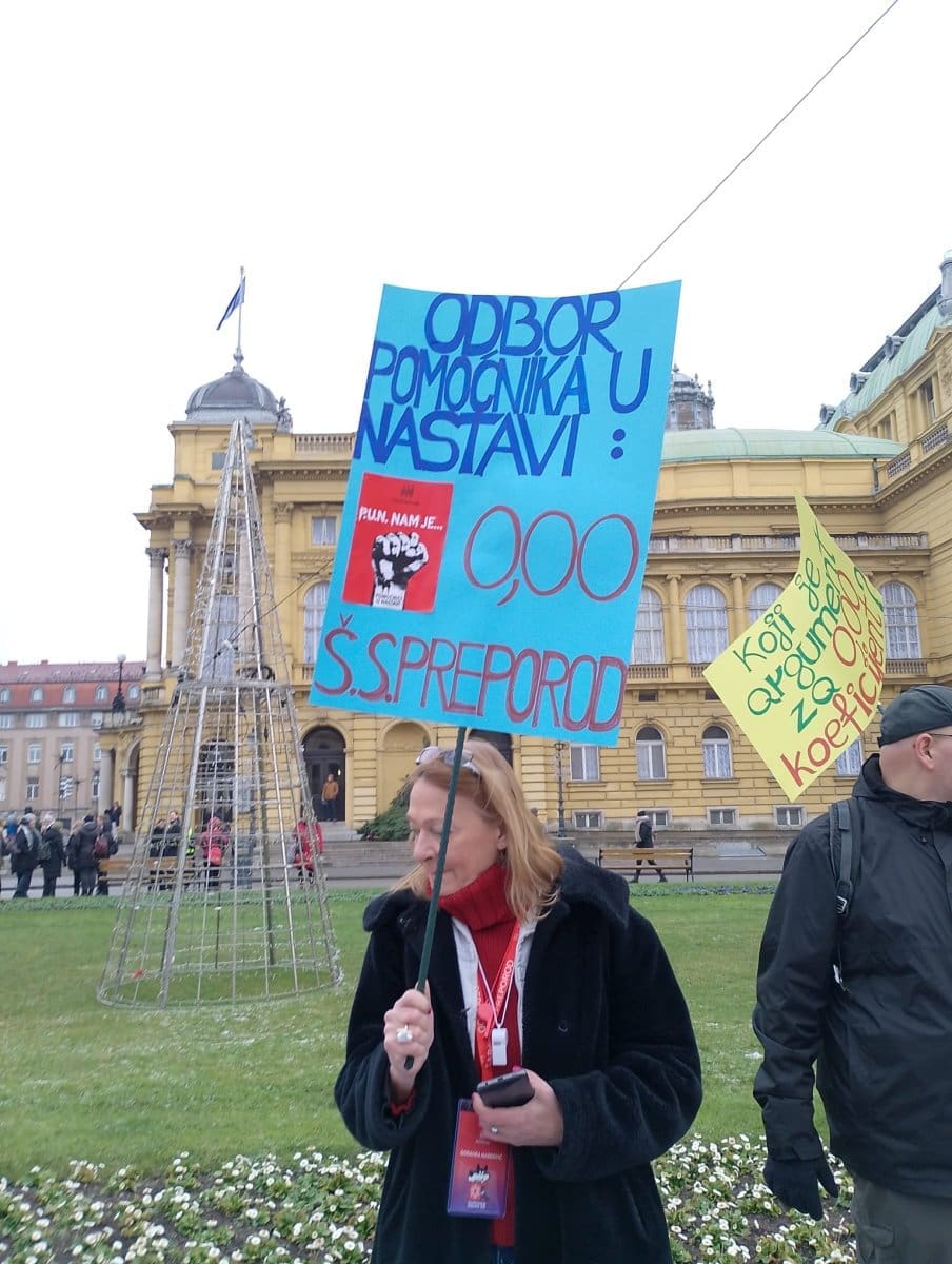 U Zagrebu je danas održan prosvjed pod nazivom "Adventski prosvjed," u organizaciji Sindikata znanosti, Sindikata Preporod i Nezavisnog sindikata zaposlenih u srednjim školama Hrvatske (NSZSŠH). Prosvjednici su izrazili nezadovoljstvo zbog, kako navode sindikati, nepravednih koeficijenata u obrazovanju te planirane uredbe o ocjenjivanju među kolegama.